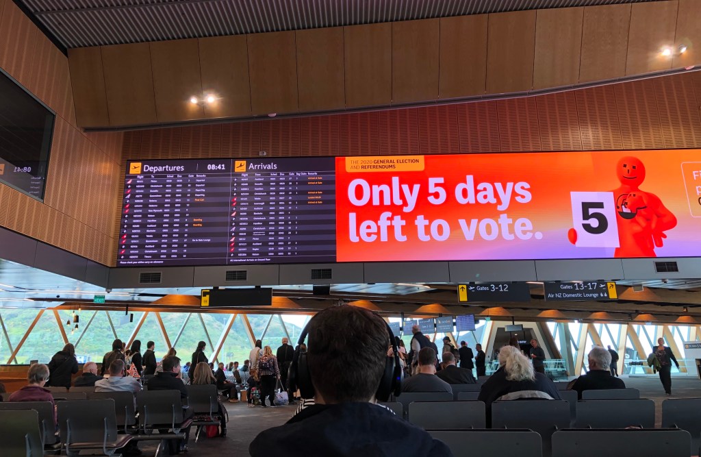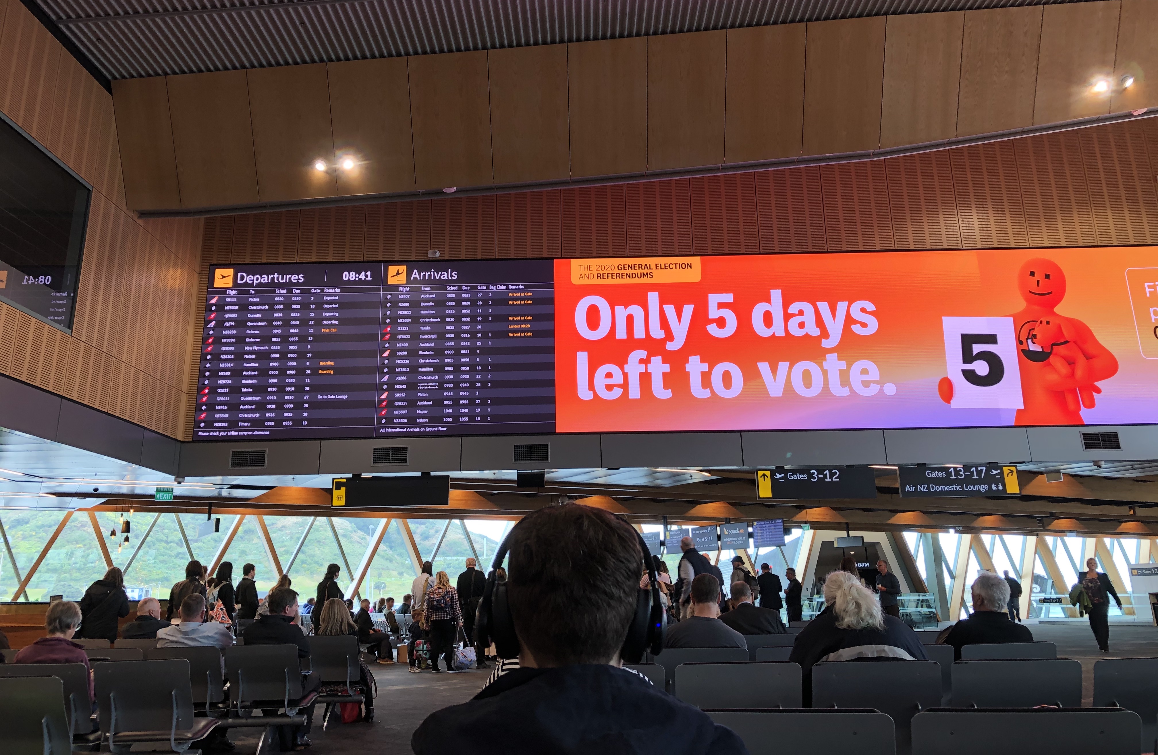 For the first time this year, I took a work trip, and flew up to New Plymouth. The photo below was taken at Wellington Airport on Tuesday while I was waiting for my flight, hence the reminder of 5 days to vote (elections are held on Saturdays here). You may wonder why I think going on a work trip is a small pleasure, but it was great to get on a plane and fly somewhere after many months.