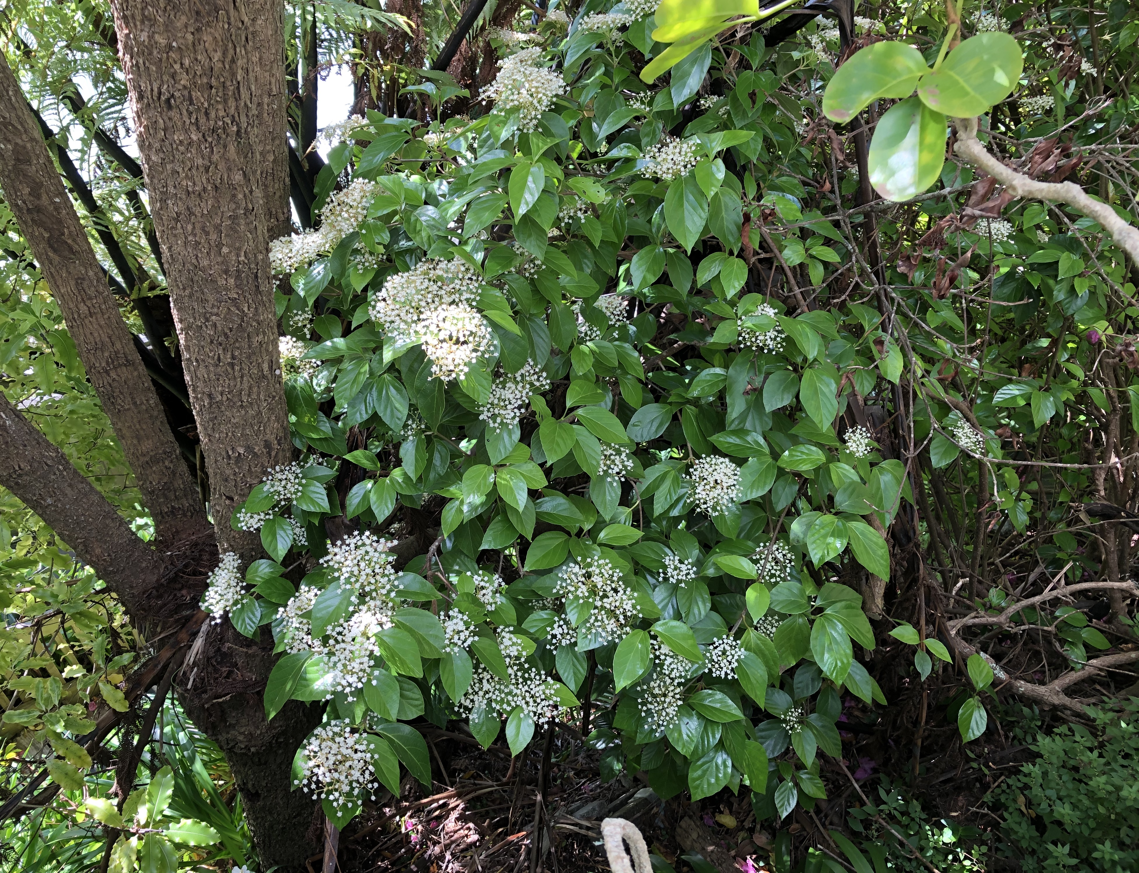 Finally, a view of underneath the house to the slope. It all looks so pretty at the moment with the viburnum in flower.