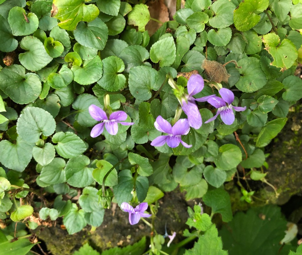 Next we come to a very pretty but invasive little viola of some kind. They pop up everywhere, and although pretty, do take over some corners and even one of the big pots.