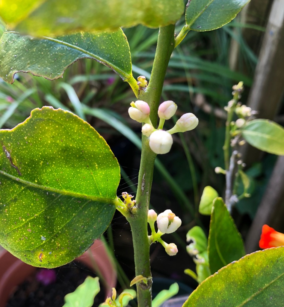 1. Pretty flowers coming on your lemon tree. All of mine are potted and have been in pot for several years. The largest is 2m high and it’s in a pot 60cm in diameter. I just have to change the soil regularly by giving it compost and citrus potting soil -as well as fertilizers.