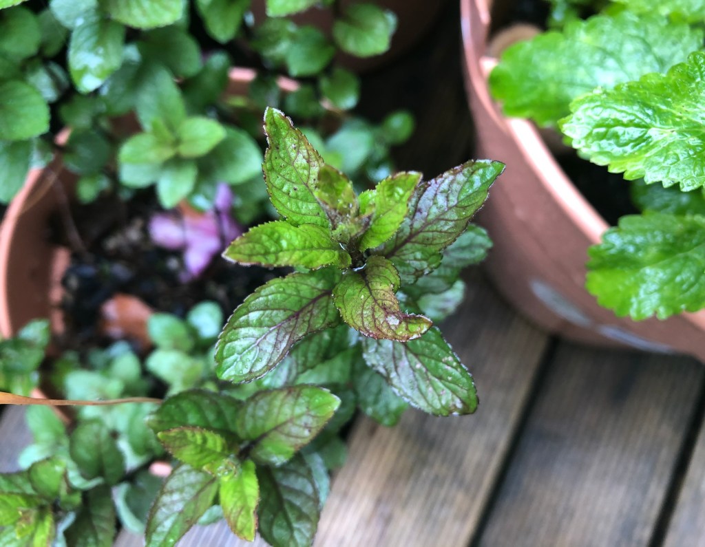 The herbs are enjoying the warmer weather, and no doubt the showers too. There are some little red flowers appearing on the pineapple sage, and the lemon balm, lemon verbena and chocolate mint are all looking good, even in the rain.