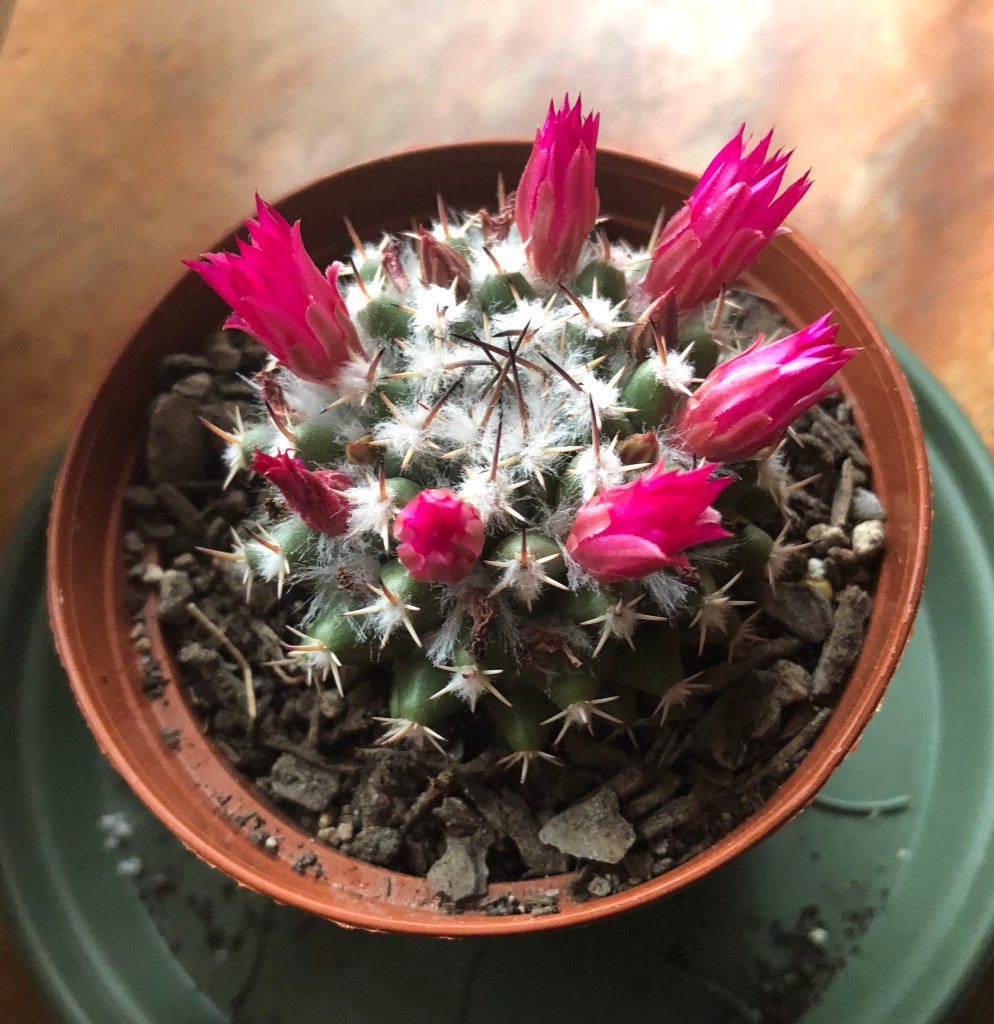 To end, back to indoors again, here are two of my cacti, one which still has bright, pink flowers, much needed on this grey day.