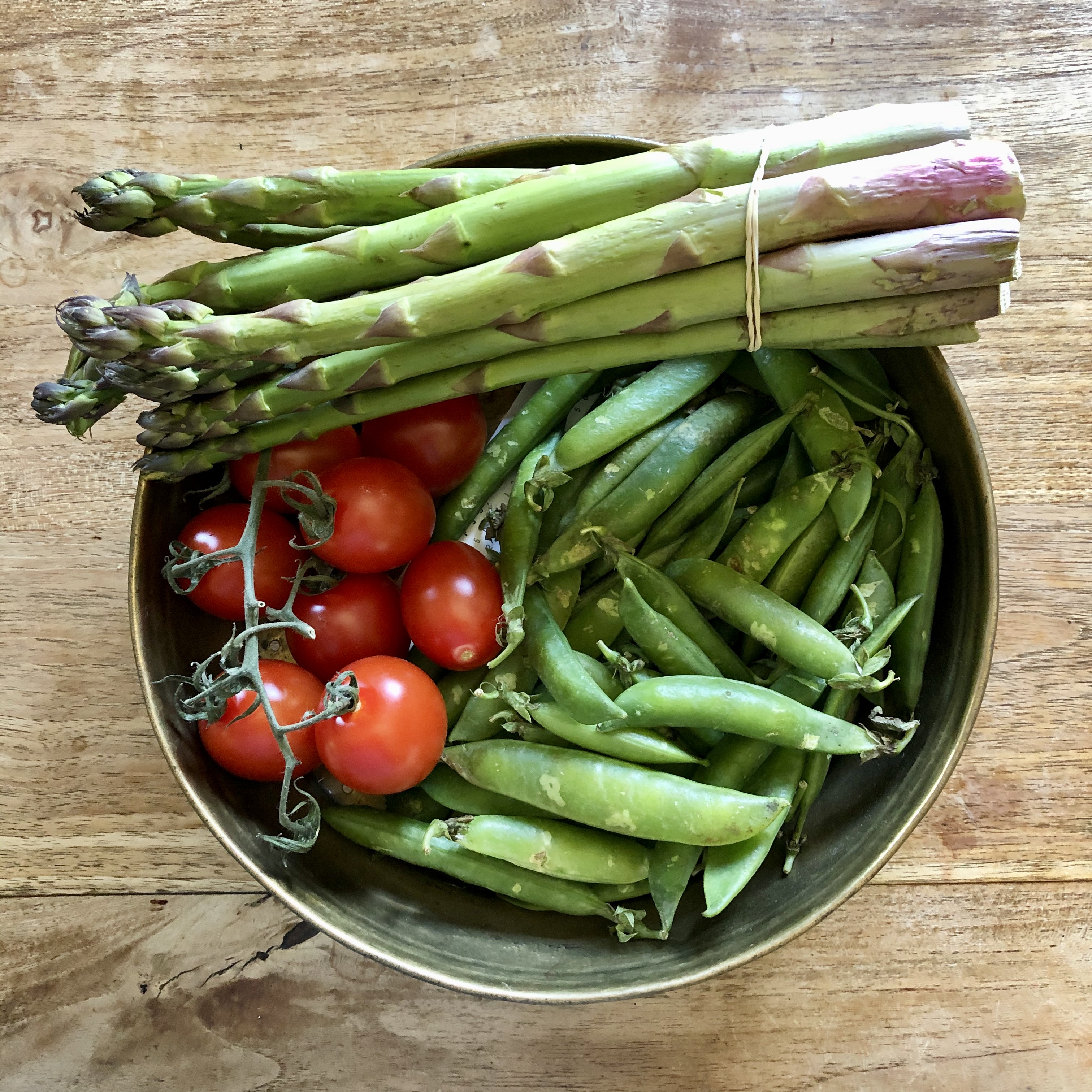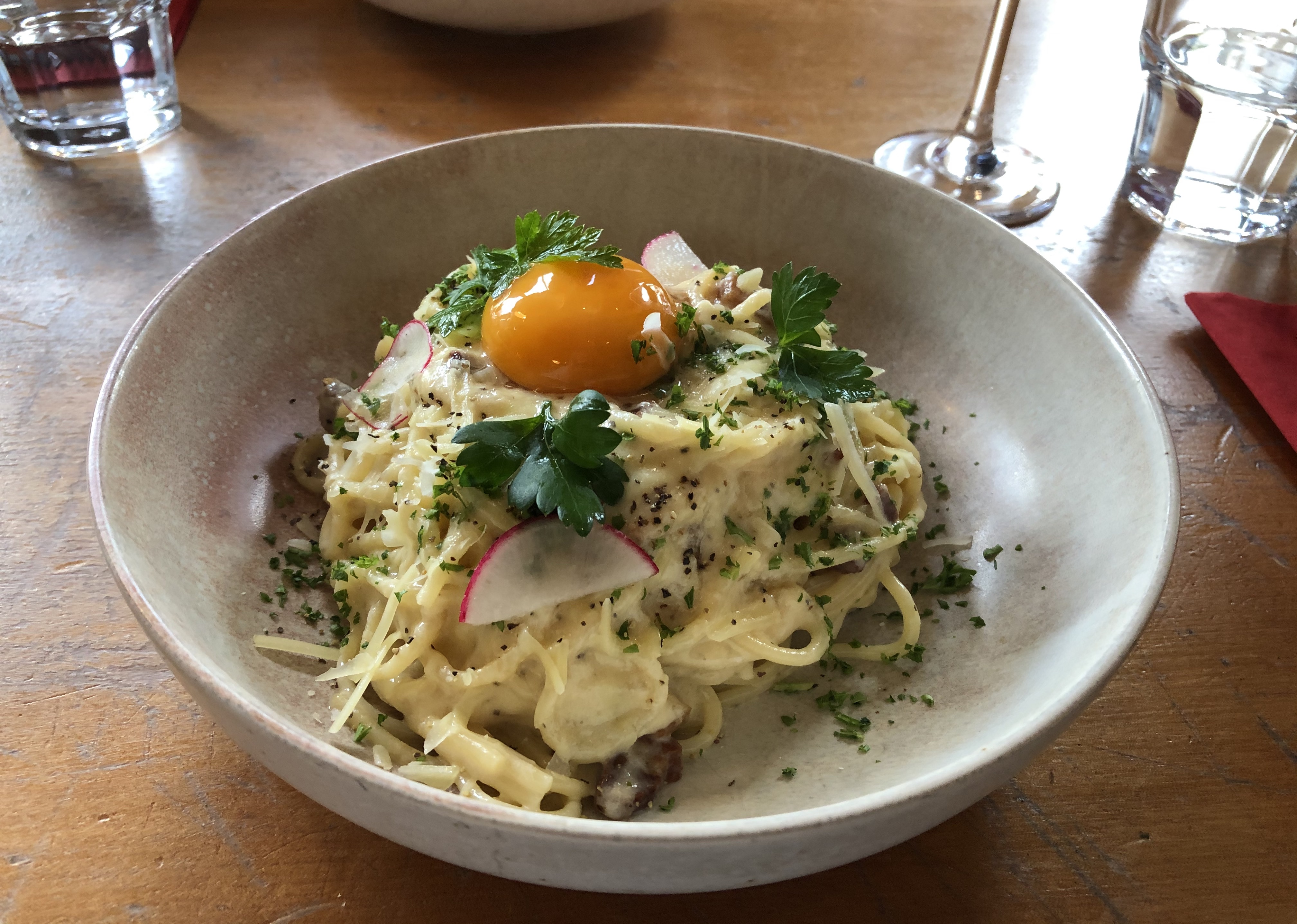And so to food….a stroll to the little market at lunch time on Wednesday resulted in the purchase of a purple cauliflower and some asparagus, as well as a focaccia from the Shelley Bay Bakery stall. On Sunday I picked up some more fresh peas, and naturally, a few tomatoes. We had dinner on Thursday at Cosa Nostra, our local Italian restaurant, where I enjoyed a spaghetti carbonara and Karl the pasta of the day, and then we totally indulged in an affogato with amaretto for me and grappa for Karl. What a treat! Things were much simpler with Friday’s lunch at home – a bagel with egg mayonnaise, dill from the garden and a couple of cornichons.
