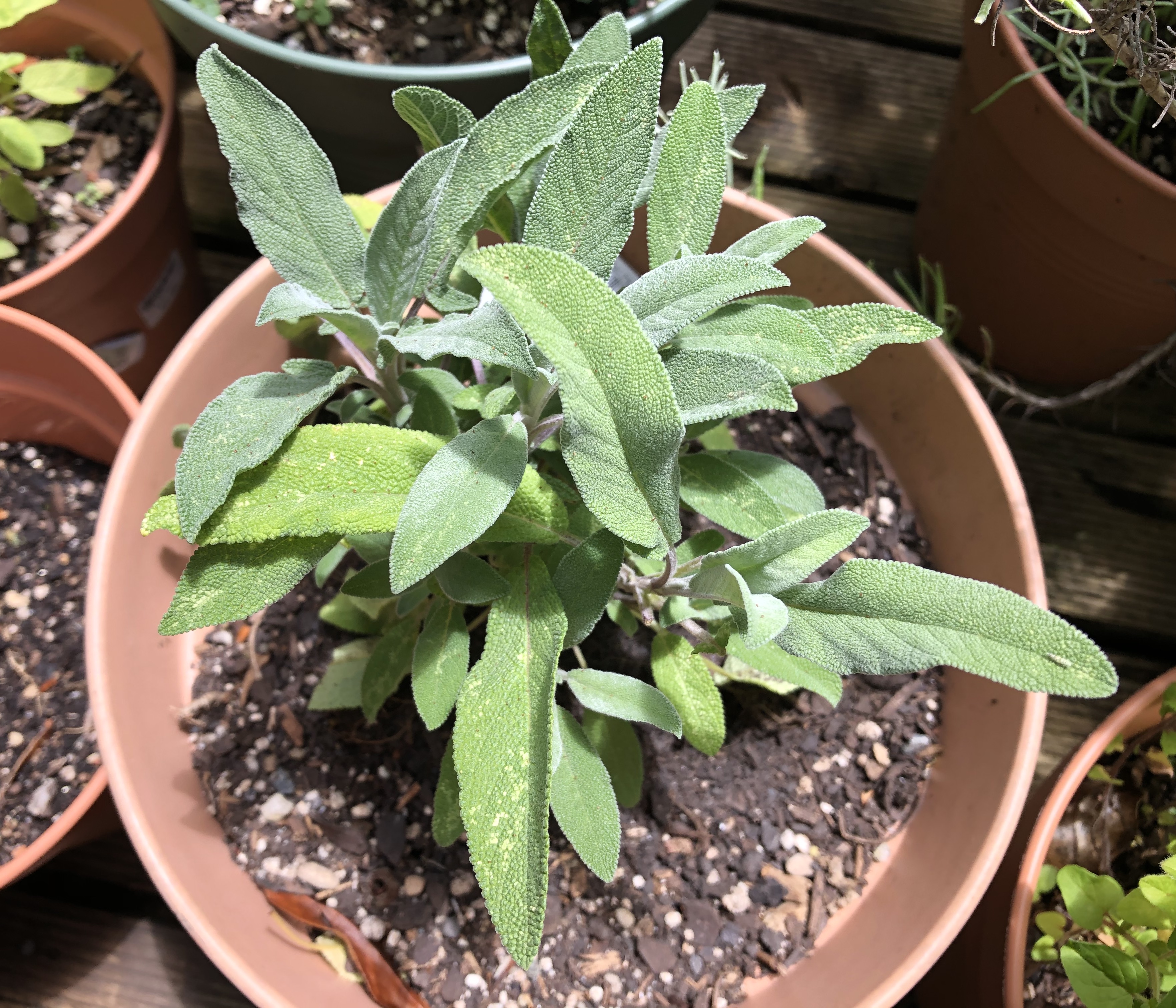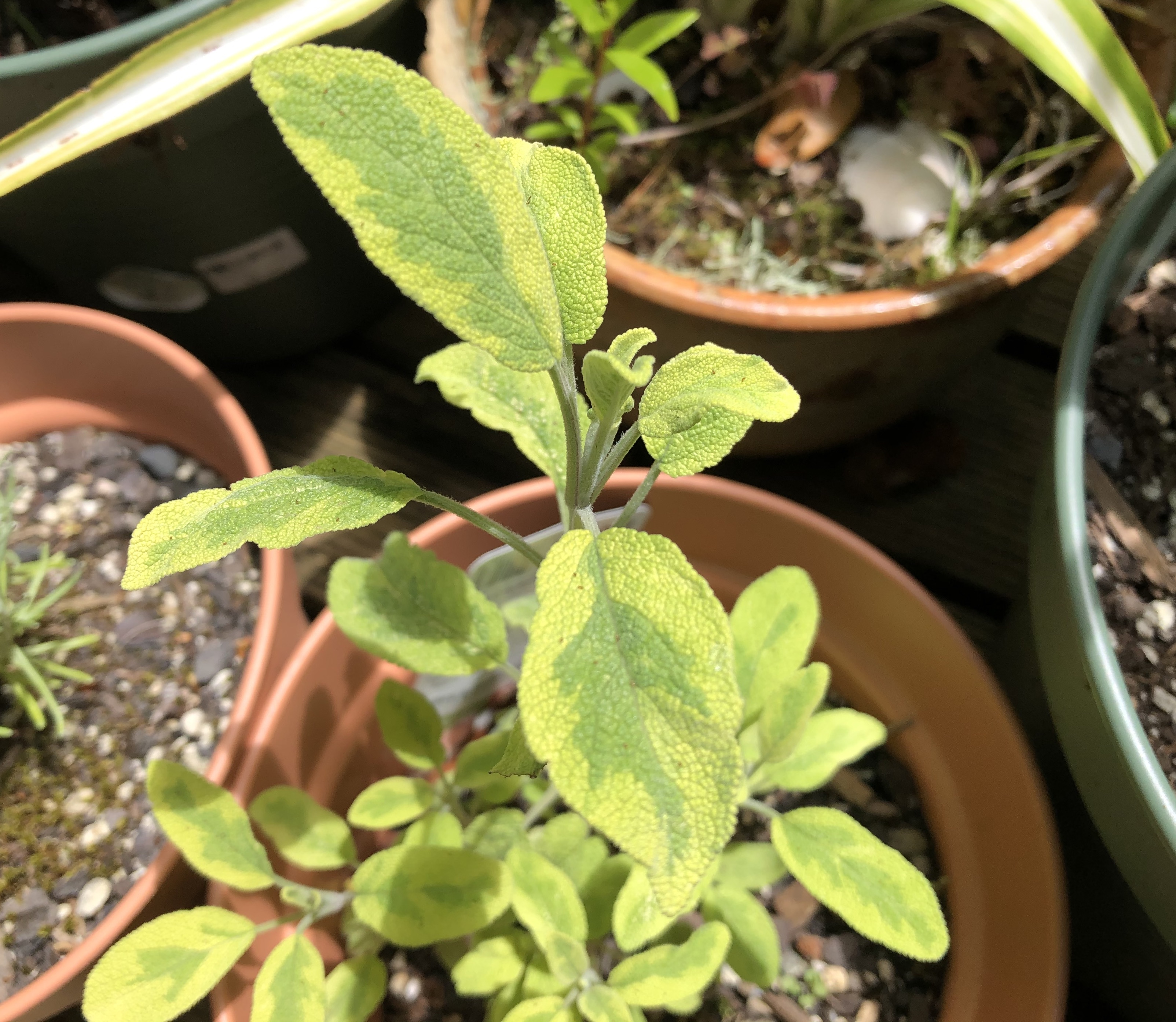 Moving on to the herbs, and most things are looking well. I planted out the supermarket pot basil during the week, which will either survive or not. I have had a lot of leaves from it in any case. The echinacea is looking good, as is the lemon verbena and sages.