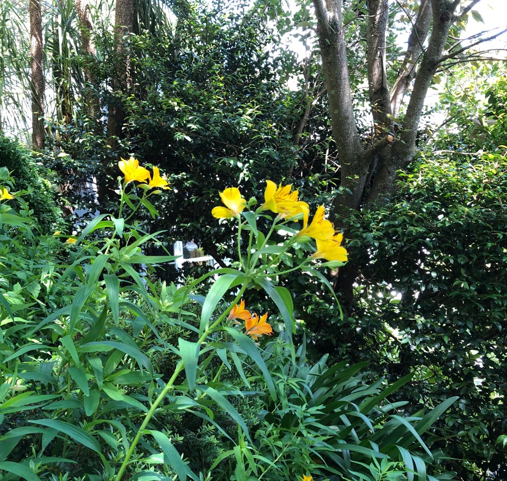 Like yours, my yellow Alstromeria are also flowering, and what a beautiful sunny colour they are! As are the Nasturtiums! The NZ rock lily is obviously the perfect plant for slopes. What fantastic coverage it offers.