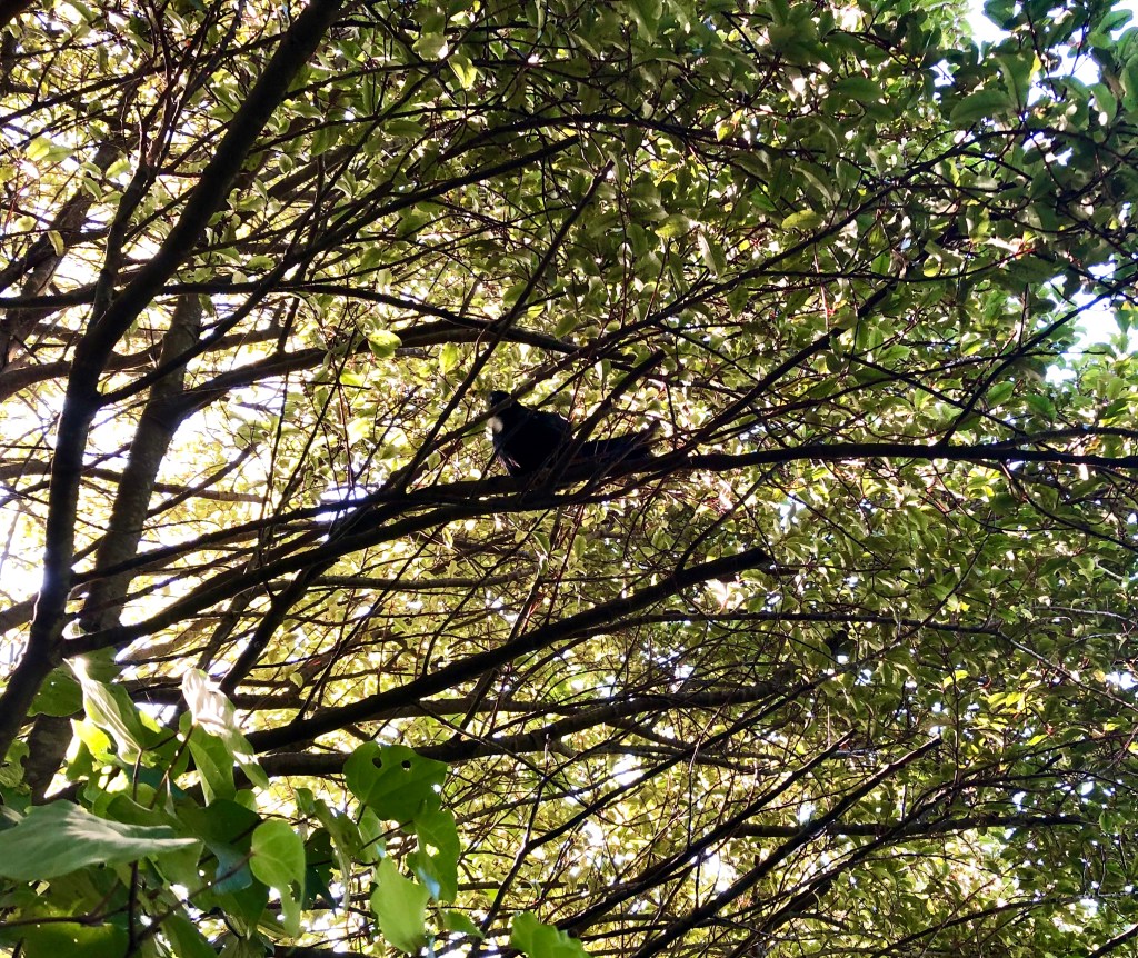 And so to number five, and I decided on this tui who paid us a visit yesterday. Tuis are native New Zealand birds, which have a sort of blue/green iridescent sheen to them and distinctive white throat feathers like little tufts. They are very vocal, with a distinct mix of tuneful notes mixed with what I can only describe as strange grunts or croaks. We have loads where we live, and their chatter and calling are always to be heard.