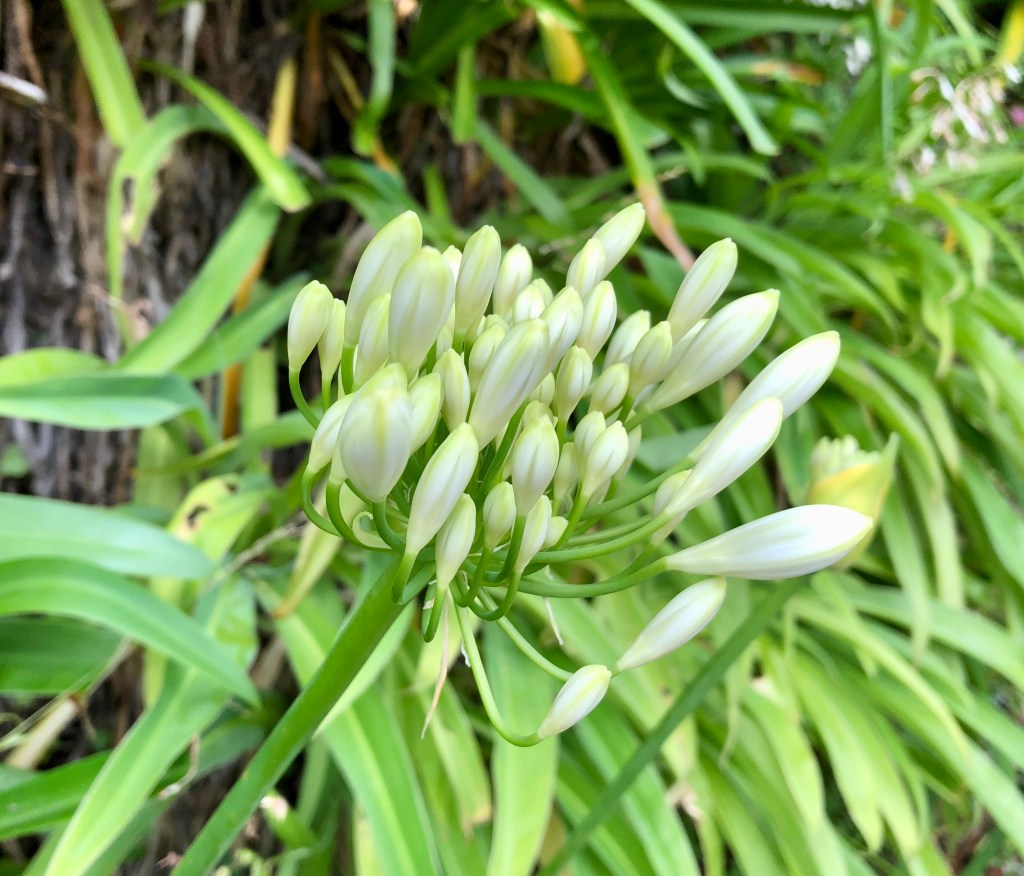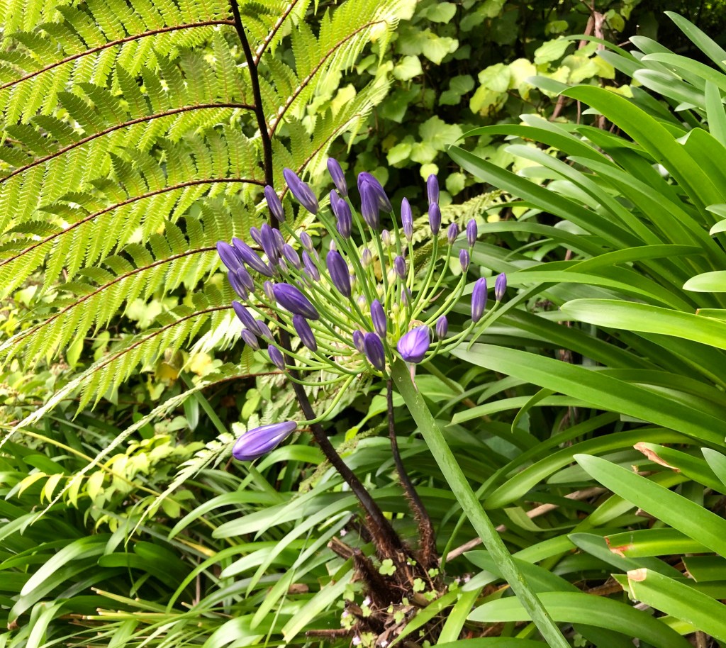 And now to the weeds growing beside the steps up to the house – yes, agapanthus. They come back year after year both blue and white. They’ll be in full flower next week.