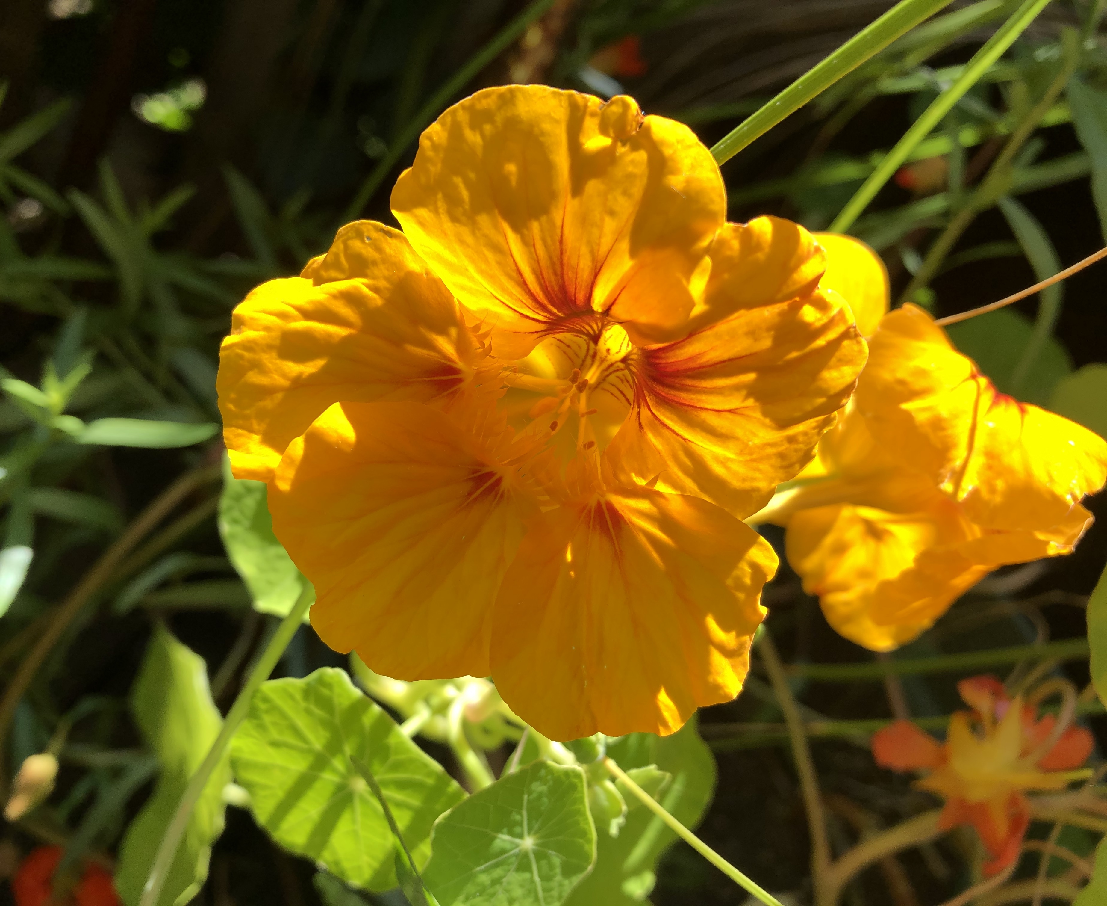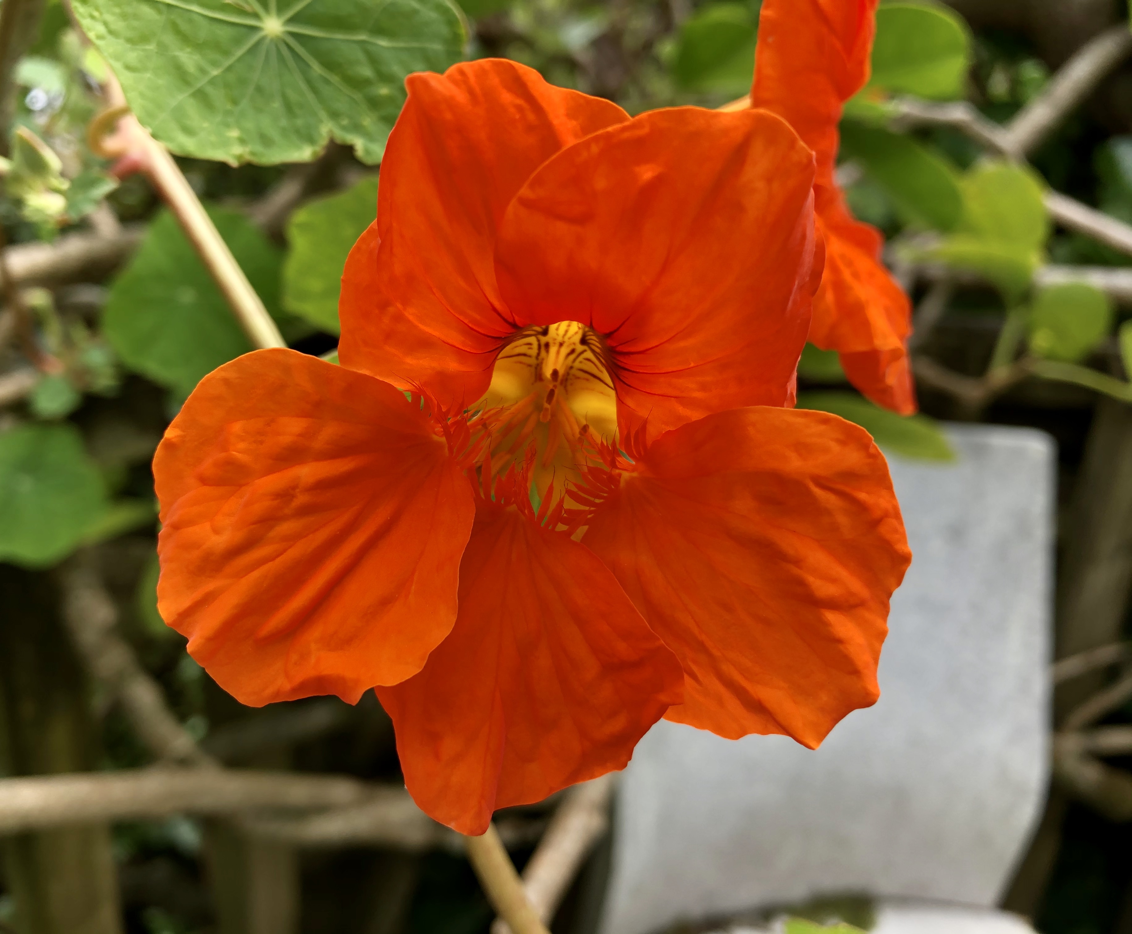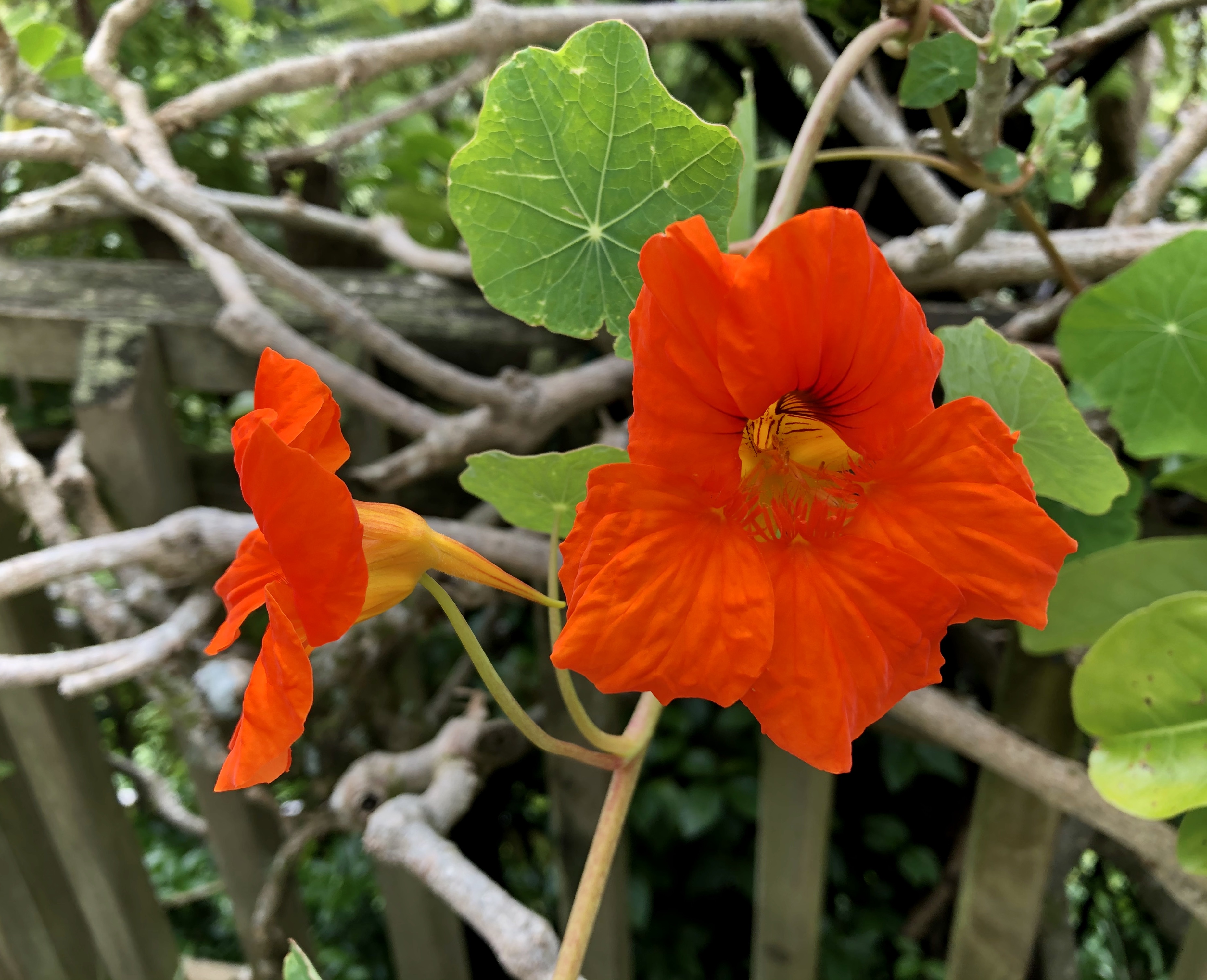 And so to more flowering plants that seem to pop up everywhere…nasturtiums. These are this weeks flowers, including more of the surprise plant that has sprung up underneath the decking and spreading up the fencing. I’m afraid there’ll be more of these in future posts!