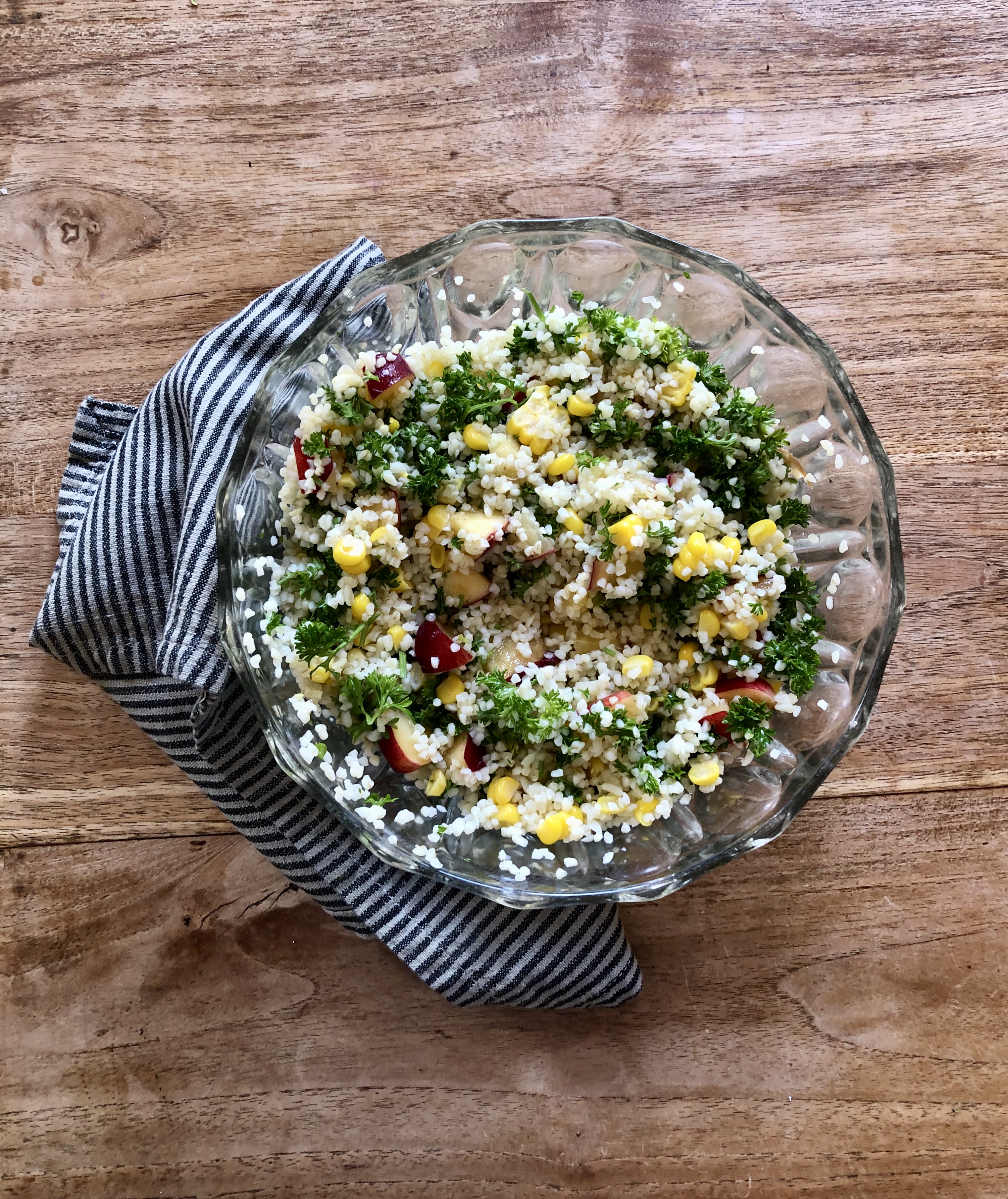 I am really enjoying these “small pleasures” posts. I think if 2020 has taught me anything it is to be more aware of, and grateful for the little things. I mix sweetcorn into tabbouleh too (preferably fresh off the cob and a bit charred), but would never have though of nectarine. But if Nigel Slater has suggested it, I’m good with that.