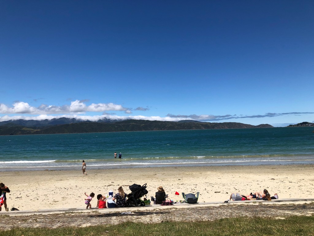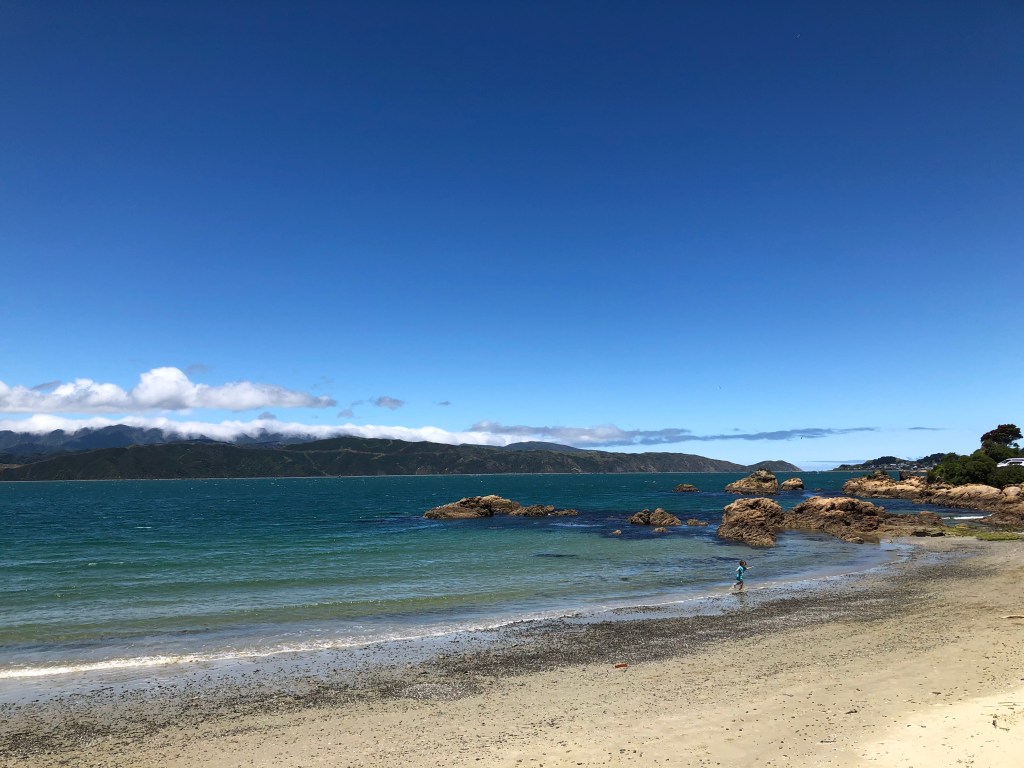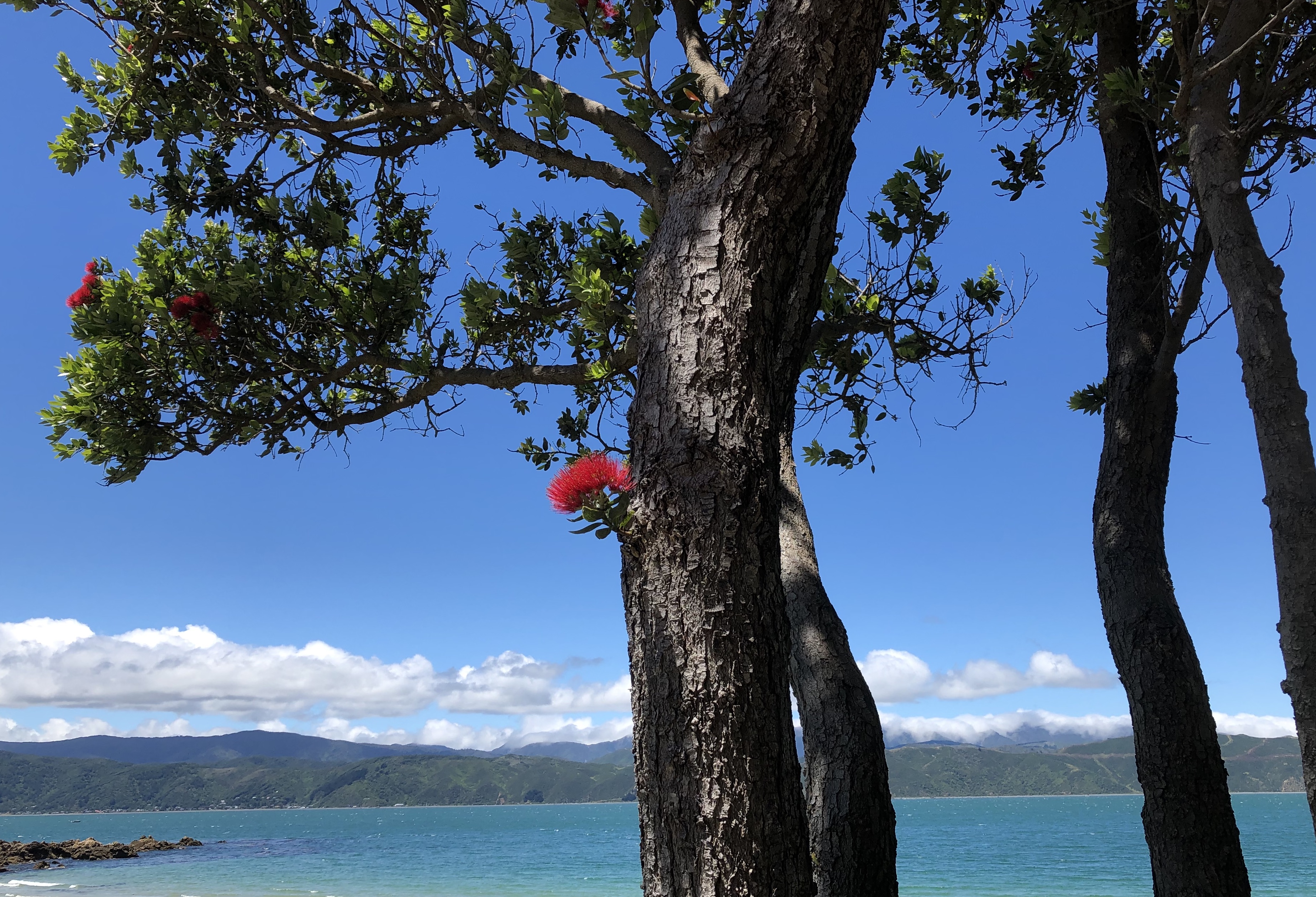 First up, there was some good weather in between the showers, and we took a drive on Wednesday around the coast, stopping at Scorching Bay to stretch our legs on the beach and enjoy the beautiful blue skies. The two pictures below, and the featured image at the top of the post (which features a pohutukawa, or New Zealand Christmas tree as it flowers at this time of the year) were taken there. We even stopped for ice-cream.