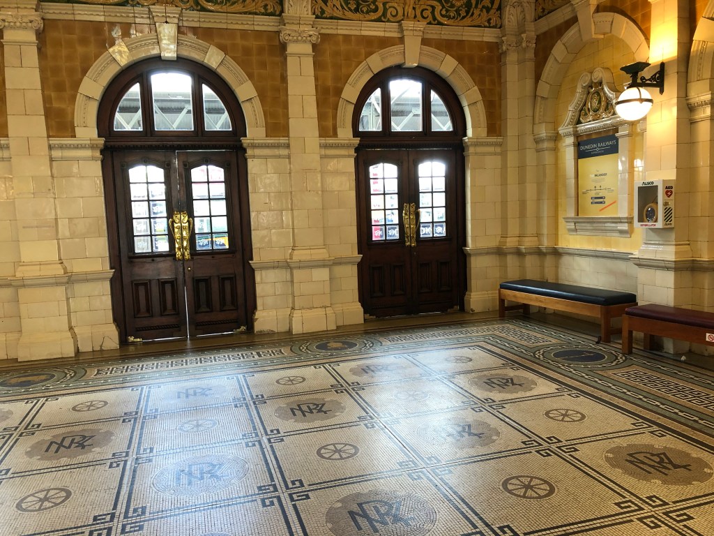 No visit to Dunedin would be complete without seeing the railway station (see the featured image at the top of the post), the second most photographed building in the Southern Hemisphere (the first being the Sydney Opera House). The building dates from 1906, and is such a striking looking building. You can see the booking hall below which features a mosaic floor of almost 750,000 tiles of Royal Doulton porcelain.