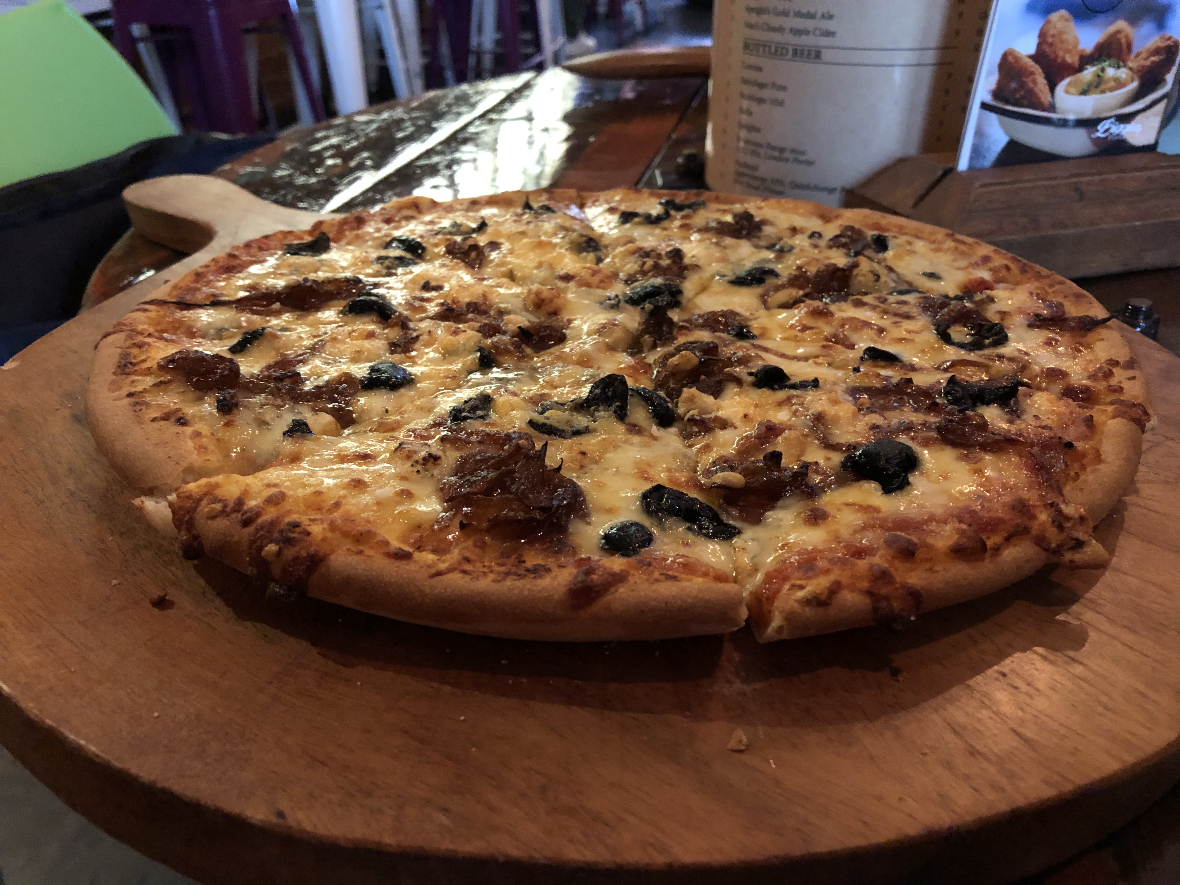 As ever on a Small Pleasures post, there is always food, and this week is no different. On our first evening in Dunedin we ate at The Press Club, housed in a building once used as a meeting place for local editors and publishers. We began with cheese rolls, that speciality of this part of New Zealand (read about them here). These were delicious, if slightly posher than the usual! I had the fish with a flavourful couscous which was gorgeous, while Karl opted for the burger. We had a good curry at Indish on Tuesday, a giant pizza at Biggie’s Pizza (the one you can see is called Nigella, after Nigella Lawson) and then on our last night headed over to No. 7 Balmac in Maori Hill. We shared some wonderful bruschetta topped with tomatoes, basil and mint, then I had a really tasty venison saltimbocca with balsamic roasted potatoes and whipped chèvre. Karl had the beef, which got good reviews.