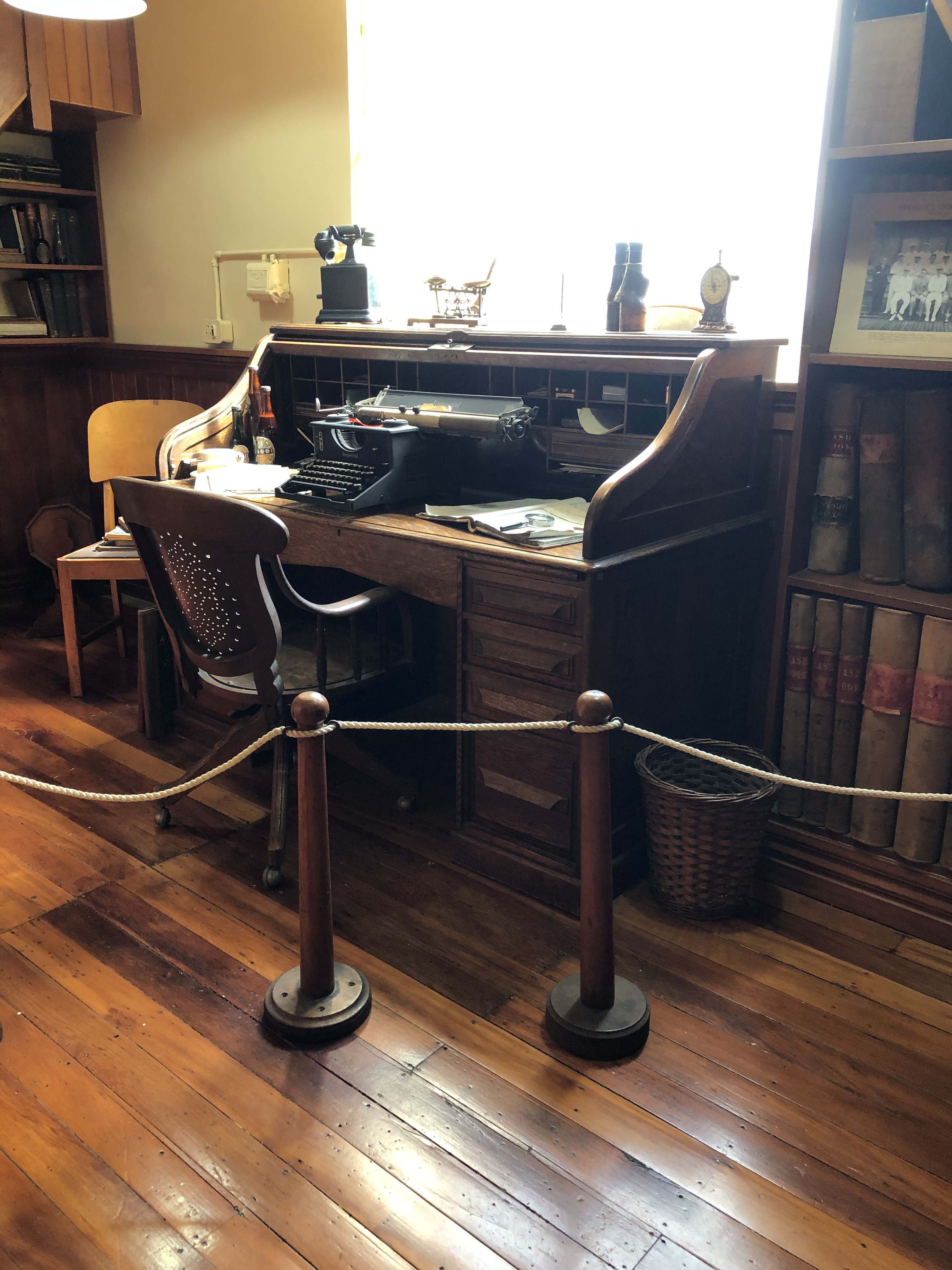 I love the pebbled pathway would have taken ages to lay & the architecture of the bridge. I would be quite happy to work at that desk with the beautiful old type writer.