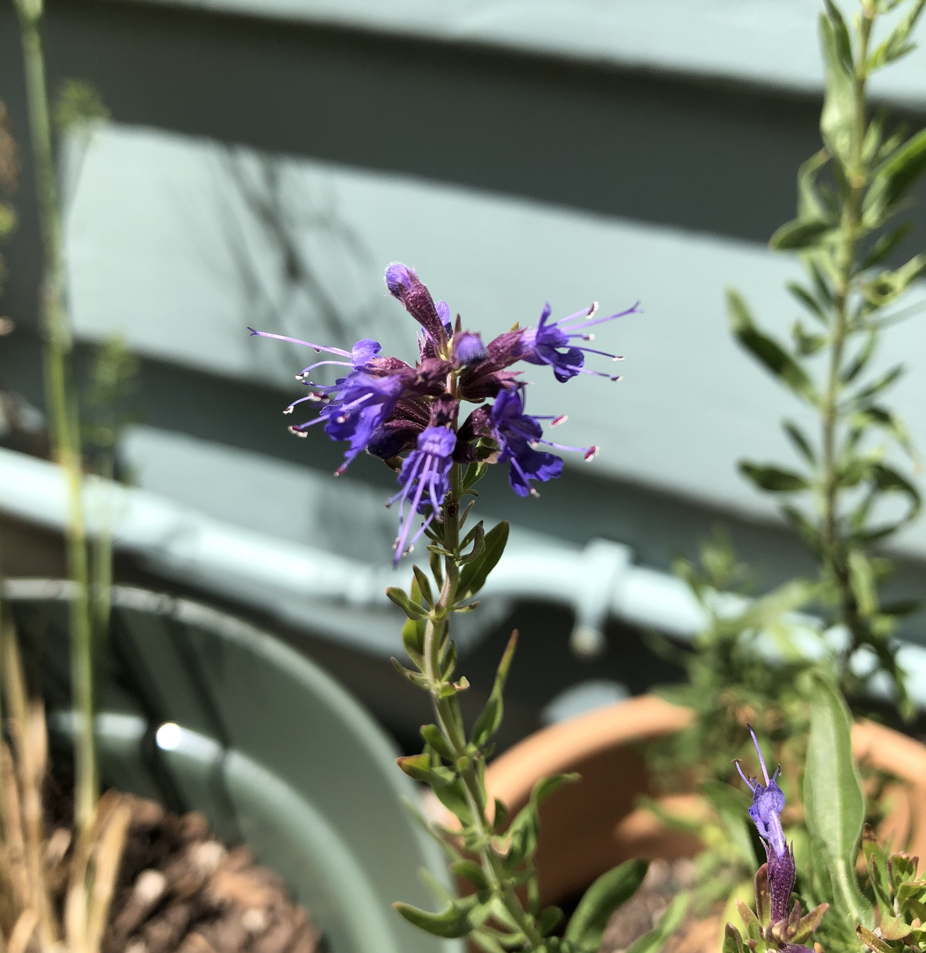 Over in herb corner, I am really pleased with the discount lavender I bought, which seems to be settling in fine. Both oregano plants are flowering, and I will harvest the flowers tomorrow to make flavoured vinegar. The hyssop flowers are also really pretty, and I have included the salvia flowers here too because it makes for a lovely lilac and purple block of pictures.