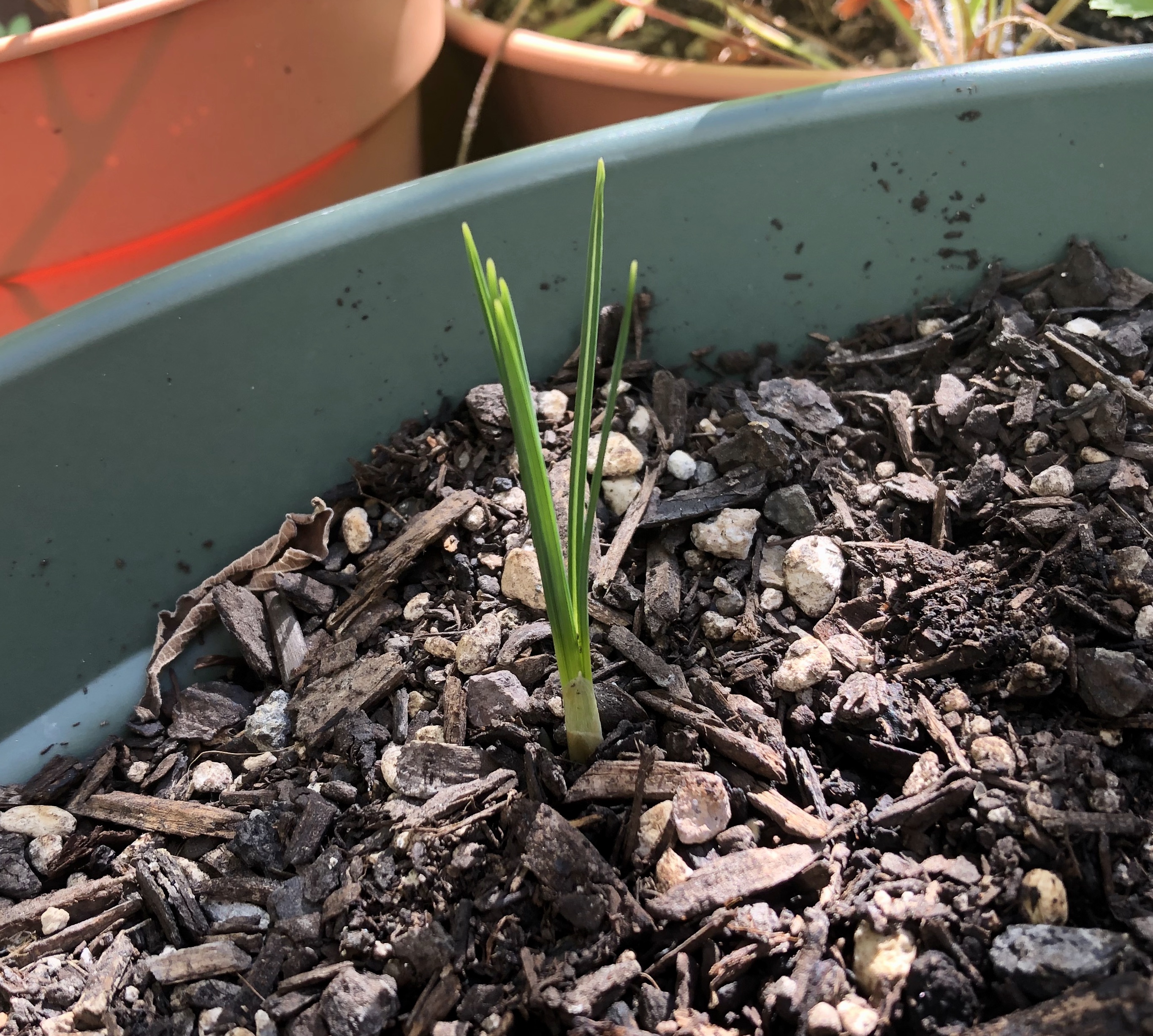 At number four, something exciting – the first signs of the saffron crocus I planted. I can see three peeping up at the moment – think I planted 5 bulbs from memory. This is really exciting to see as I am sure you can appreciate!