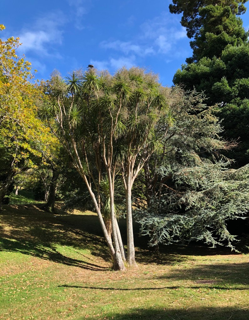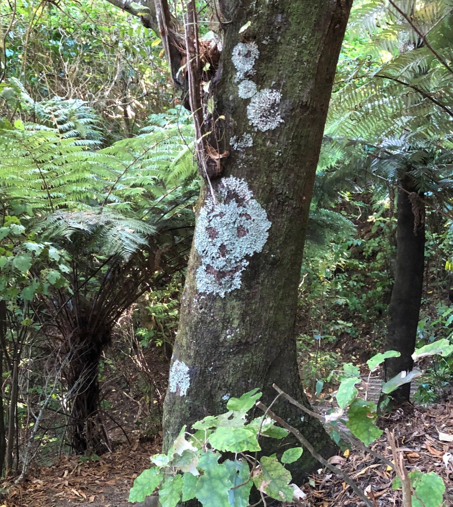 For today’s Wordless Wednesday, trees from two walks in the Botanic Gardens. Don’t you love the little face in the lichen in picture number 2? And spot the kereru in the cabbage tree in pictures 4 and 5.