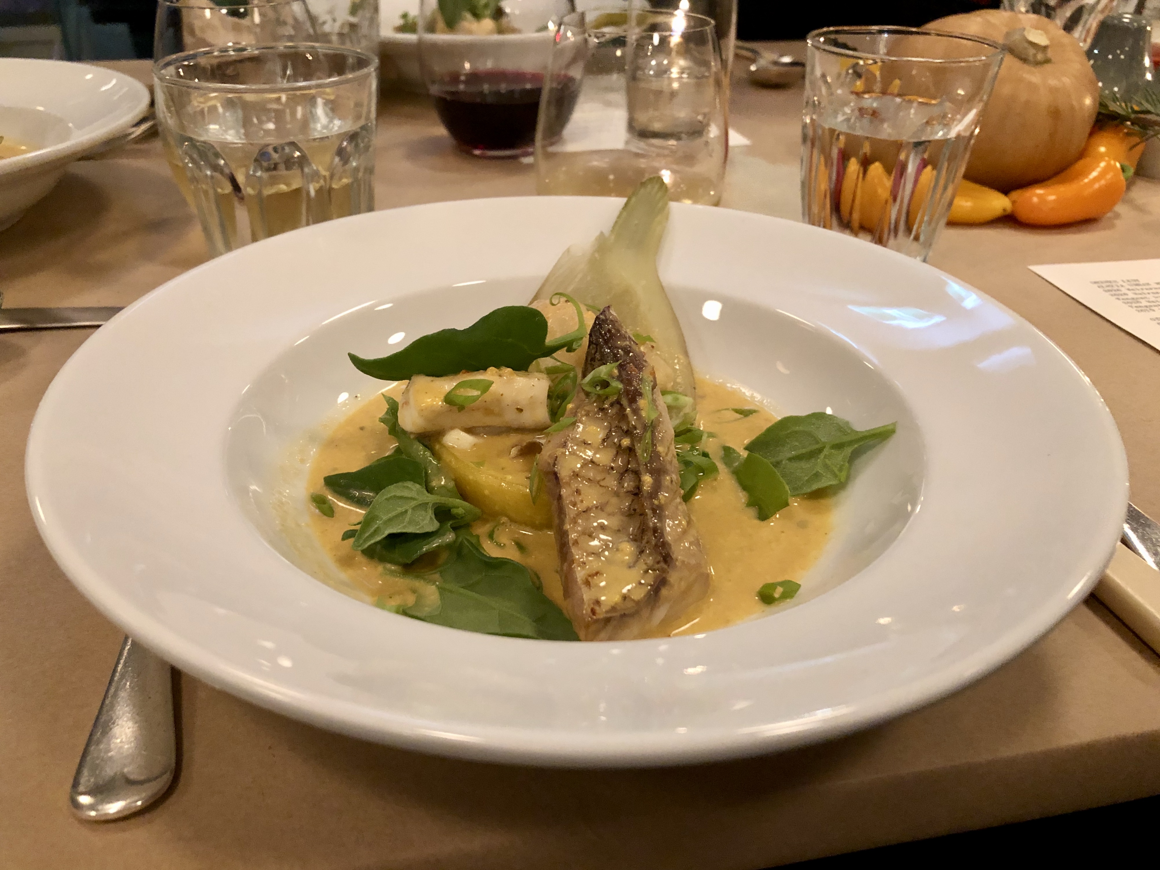 If we were having coffee…or even a cup of tea…I would tell you about the Supper Club event we went to at Field & Green on Wednesday night. The theme was Harvest Moon, and all the produce was sourced within 75km of Wellington. I tell you that we started our meal with sparkling wine and good bread, and then ate a beautifully cured beef served with rainbow chard and a blueberry dressing, followed by a bourride (a fish stew) made with three different fish, and topped with fennel, rengamutu (New Zealand spinach) and sorrel. For dessert there was a blueberry Bakewell tart with lemon balm ice cream, and then a cider washed rind cheese from Remutaka Pass Creamery. Wine was all sourced from Alexia over in Greytown, with a Garage Project porter to have with the cheese. There was wonderful live music from Tristan Carter and Charley Davenport, who both often work with Java Dance Theatre. You say it all sounds very interesting and I say yes it was.