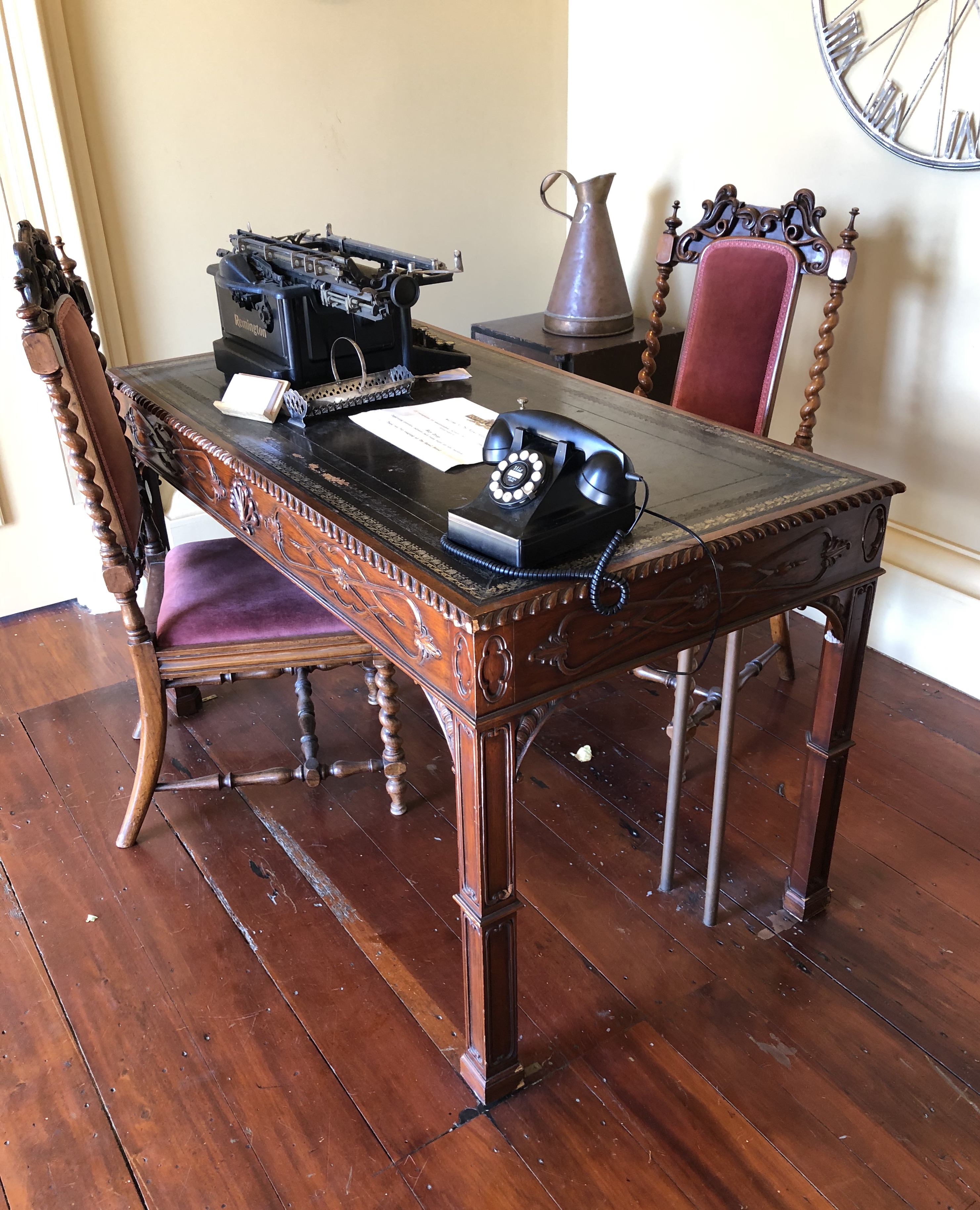 On Sunday, we drove over the Remutaka Range to have lunch in Featherston at Brac & Bow in the Royal Hotel. The restaurant had previously stood on the other side of the road, but the owners recently took over the hotel. We had enjoyed Brac & Bow in the past, so it was a good excuse to go back. The new space is much bigger and has a bar area as well. The food is just as good, with me enjoying the excellent smoked fish chowder and Karl the fish and chips. The hotel reception is home to an old typewriter and telephone – a nice touch. We stopped at the great little cheese shop and baker and then drove to Martinborough to buy some local wine before coming home.