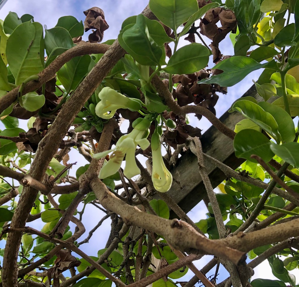 1. It is an interesting story. It took a bit of time to find out what the plant was, but a colleague at work confirmed our suspicions, Then I found two in the Botanic Gardens which confirmed it. Such a great plant – I wonder which previous owner planted it as it is very well established.