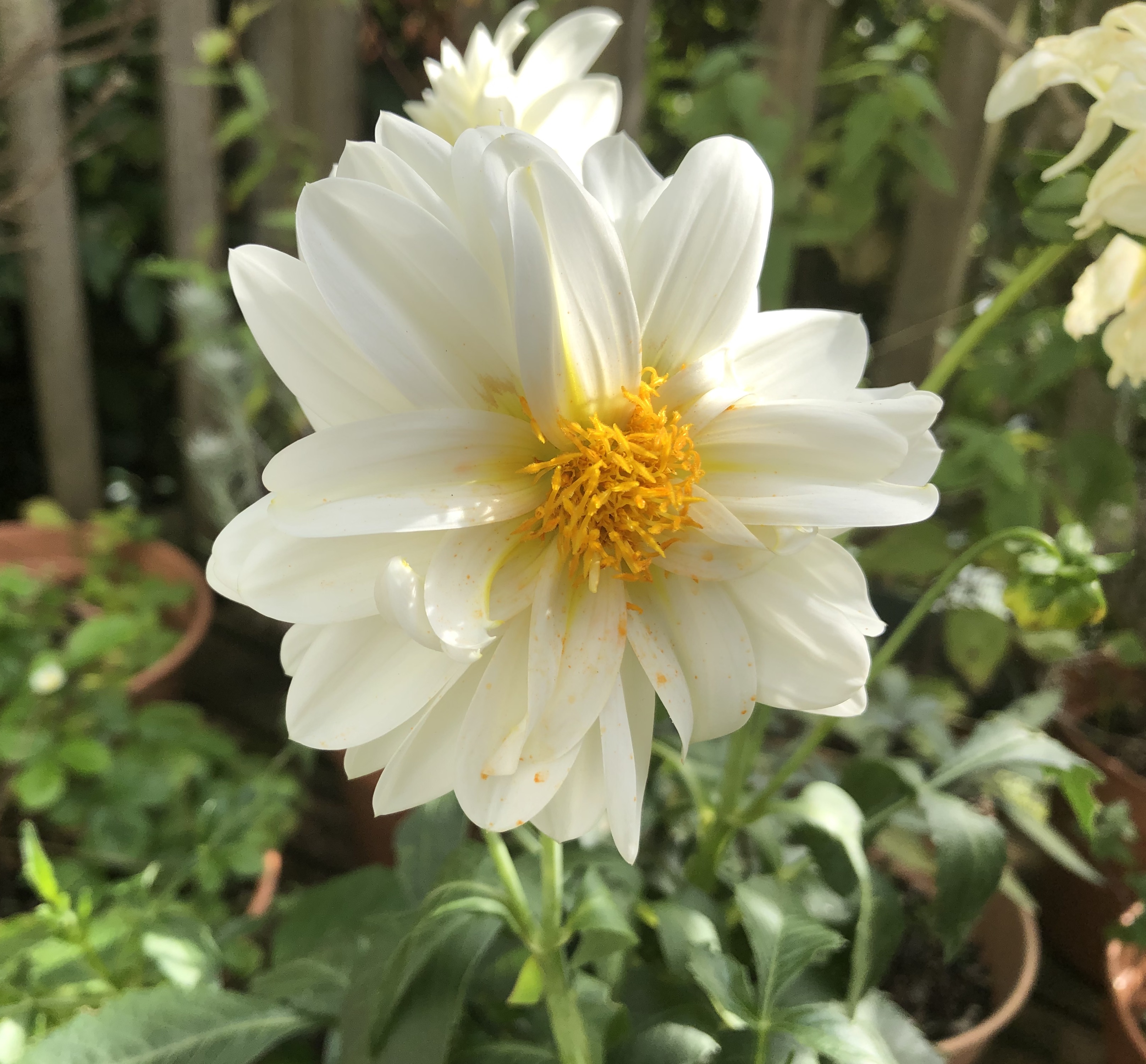 8. I have never grown dahlias before this year, and mine are in pots too. I don’t want something I have to dig up, so I can just move the containers. Violas are so lovely.