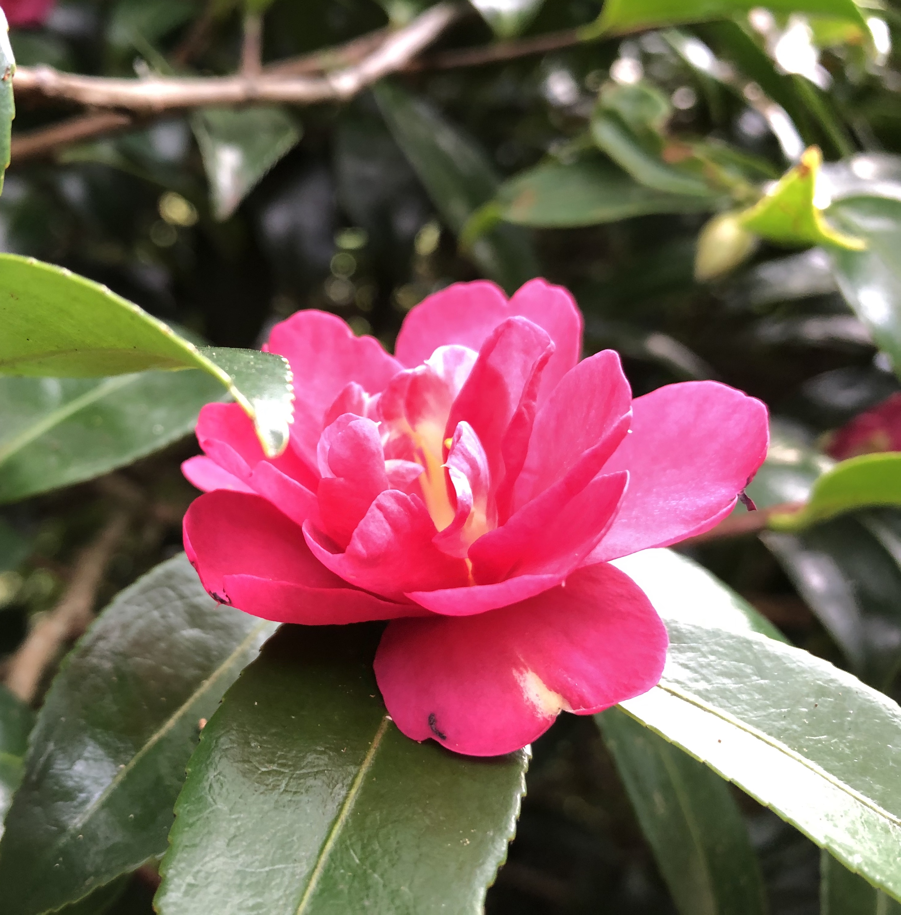 We’ll start with a lovely surprise spotted this morning. I glanced out of the window and could see several camellias in flower. It was such a great start to the day. The two small pictures below are from the bush we share with our neighbour which is always the first to flower. Such glorious pink blooms!