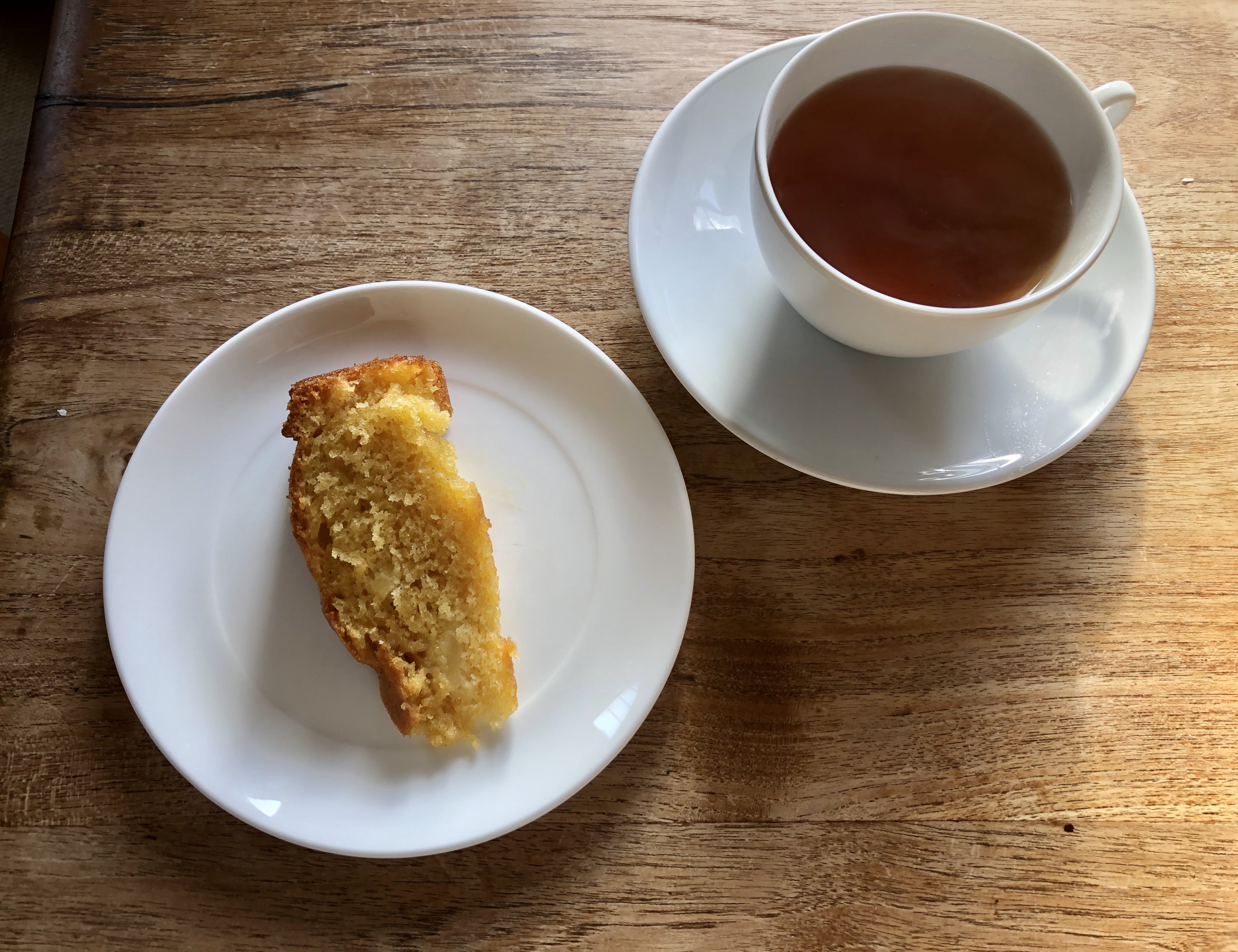 That cake looks oh so good! What a pleasure it would be to join you for tea. I’m with you in spirit. And, how wonderful that you can work four days a week!