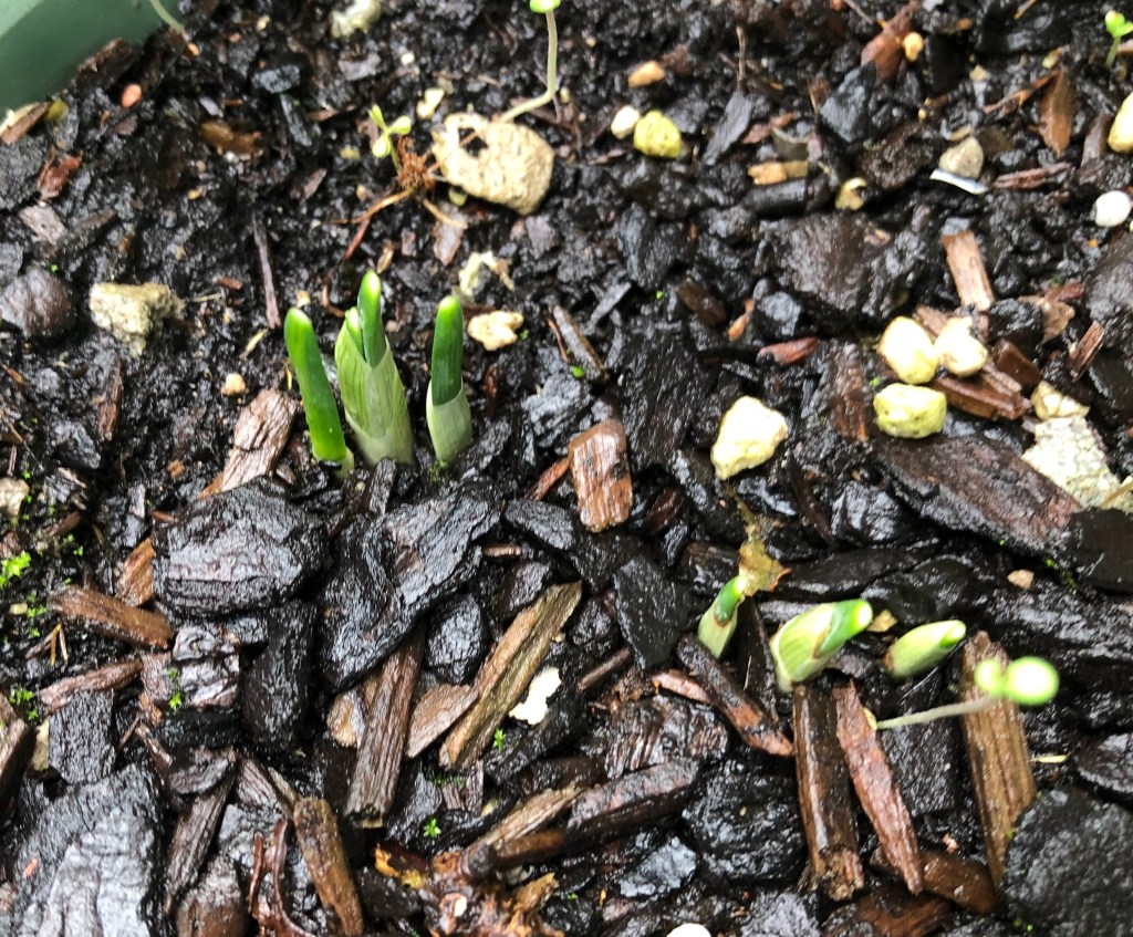I know I featured these cheeky little plants last week, but here they are again. There are a couple of other things popping up too…bulbs left in pots last year, deciding now is a good time to pop their heads above ground. In case you are wondering, there are signs of daffodils in the Botanic Gardens.