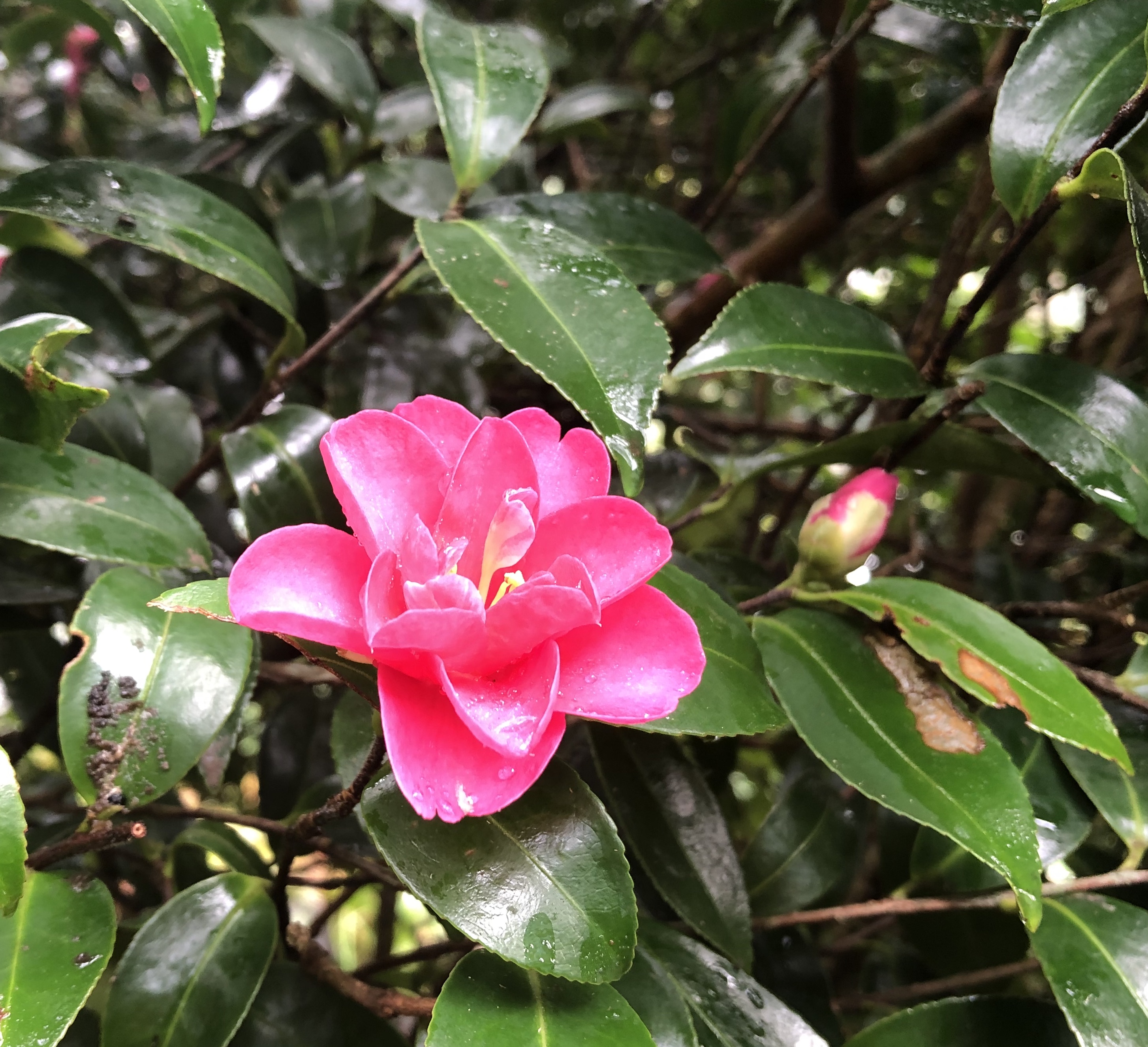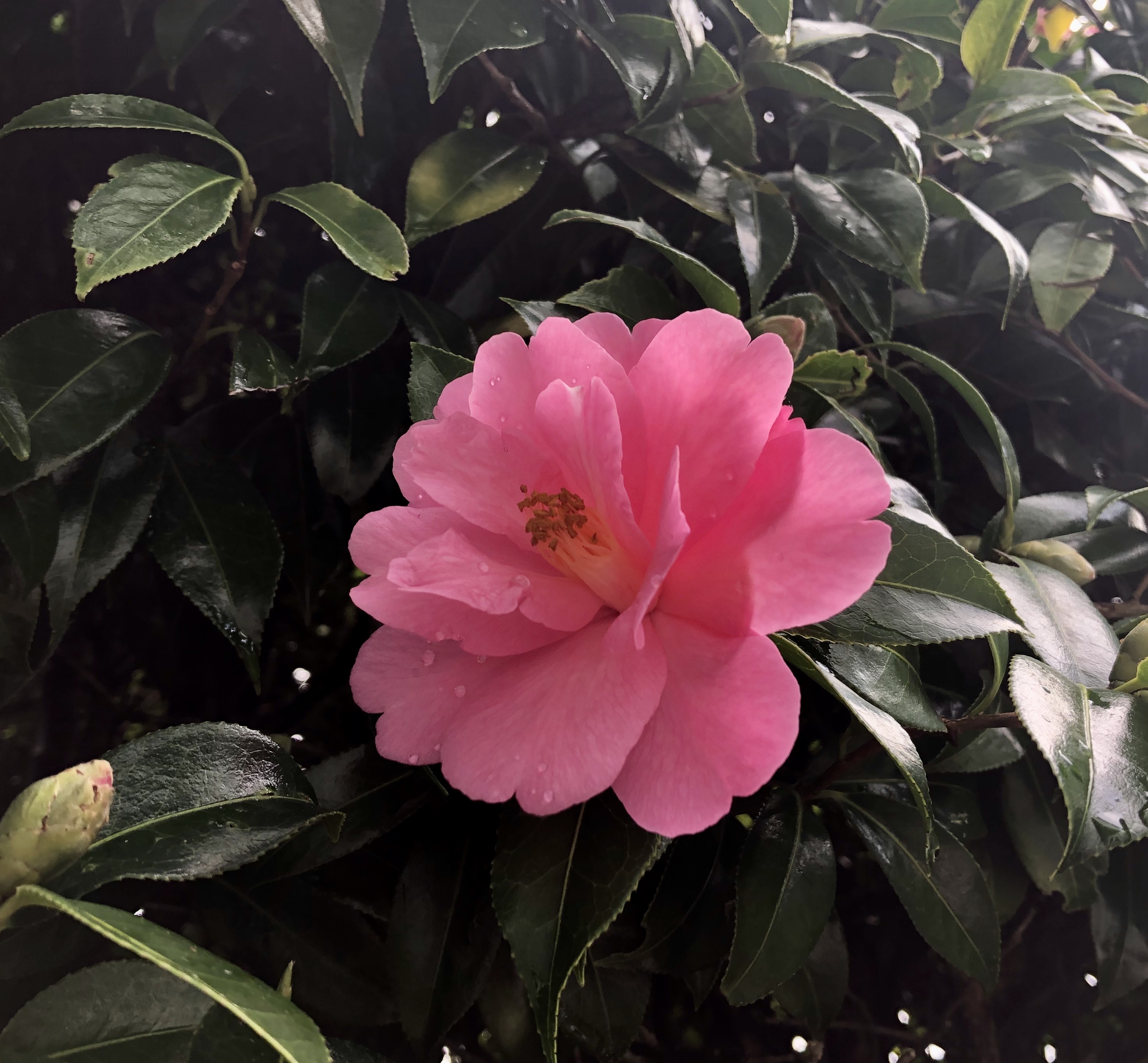 The camellia is a stunning pink. I have a rhododendron in the same colour and it really perks up the garden at this time of year. I hope the heavy rain passes you by.