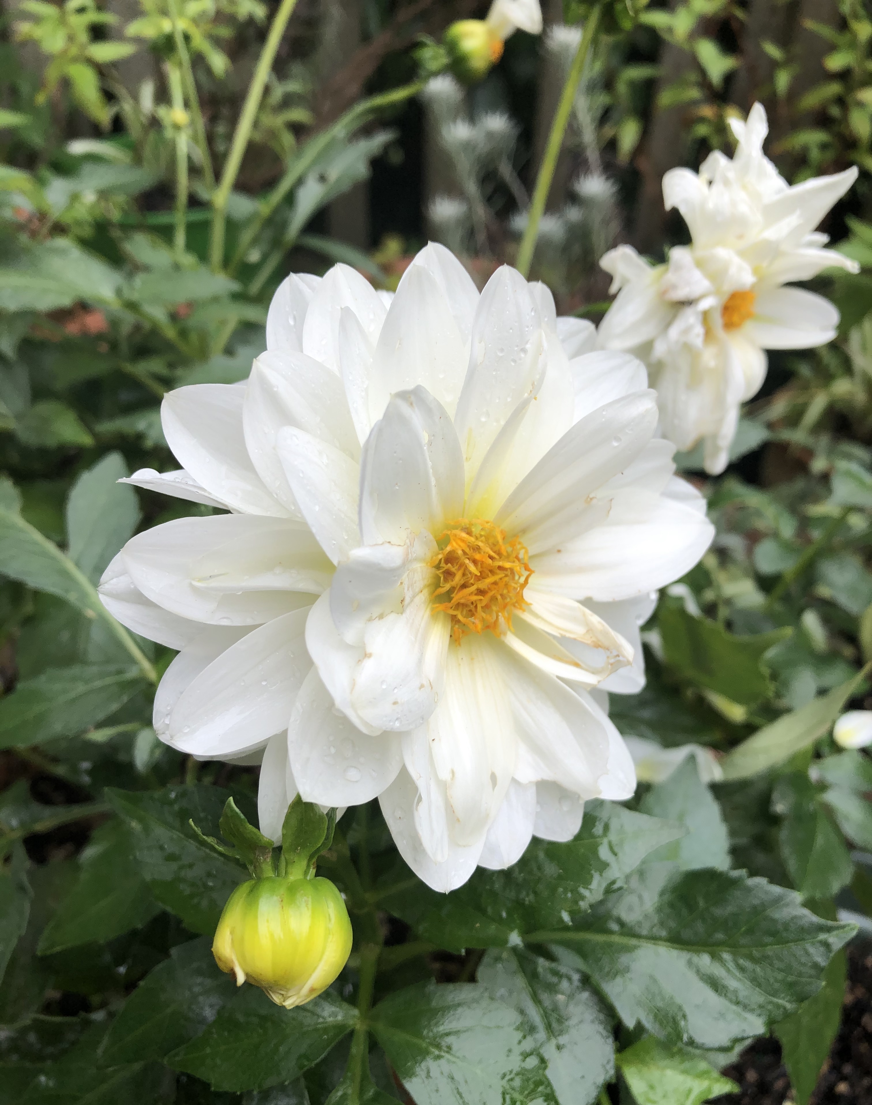 Love the raindrops..and the Peperomia! Enjoy the Camellias and Dahlias while they last.