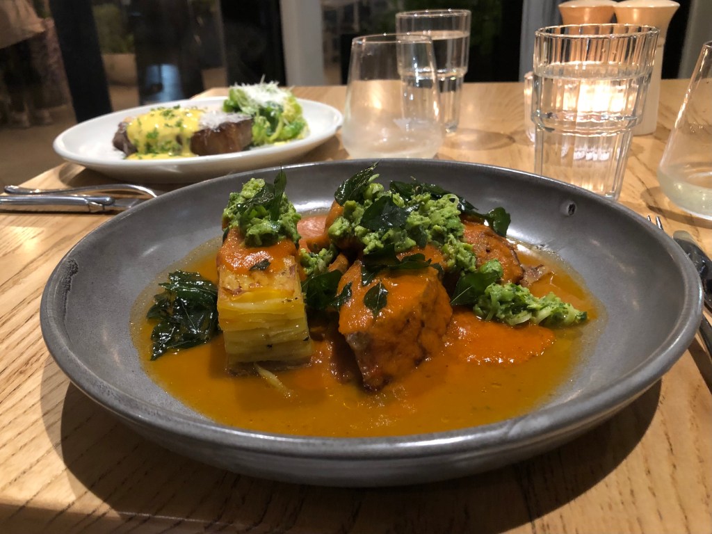 To start, we shared a plate of charcuterie which consisted of Aotea Barn organic beef macadamia salami, duck and chicken liver pate, smoked lamb’s tongue, ‘beet kraut’, pickled cumber and olives served with bread and crackers. It was an absolute delight, the smoked lamb’s tongue being a pleasant surprise, and we accompanied it with a glass of Marlborough sauvignon blanc.