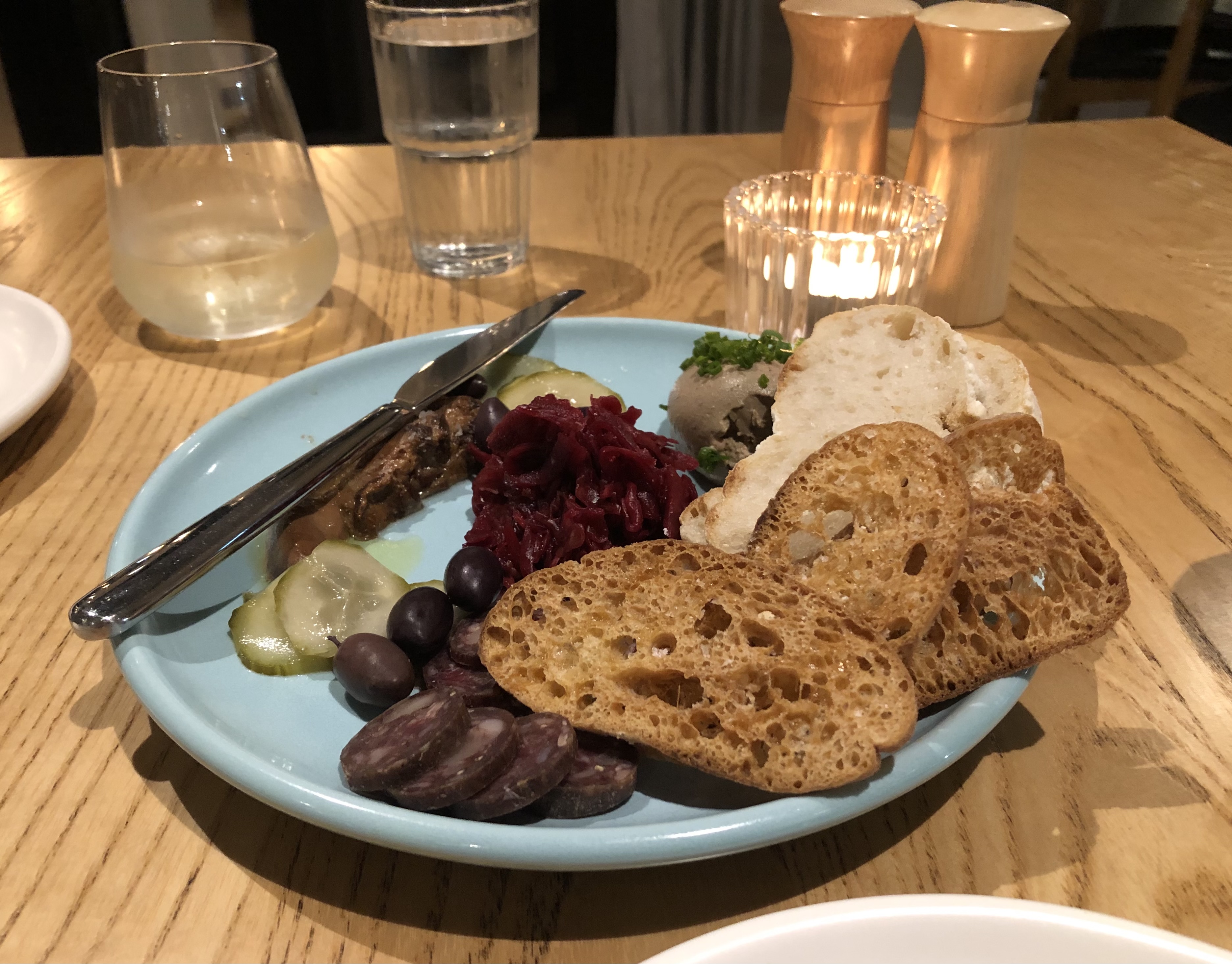 To start, we shared a plate of charcuterie which consisted of Aotea Barn organic beef macadamia salami, duck and chicken liver pate, smoked lamb’s tongue, ‘beet kraut’, pickled cumber and olives served with bread and crackers. It was an absolute delight, the smoked lamb’s tongue being a pleasant surprise, and we accompanied it with a glass of Marlborough sauvignon blanc.