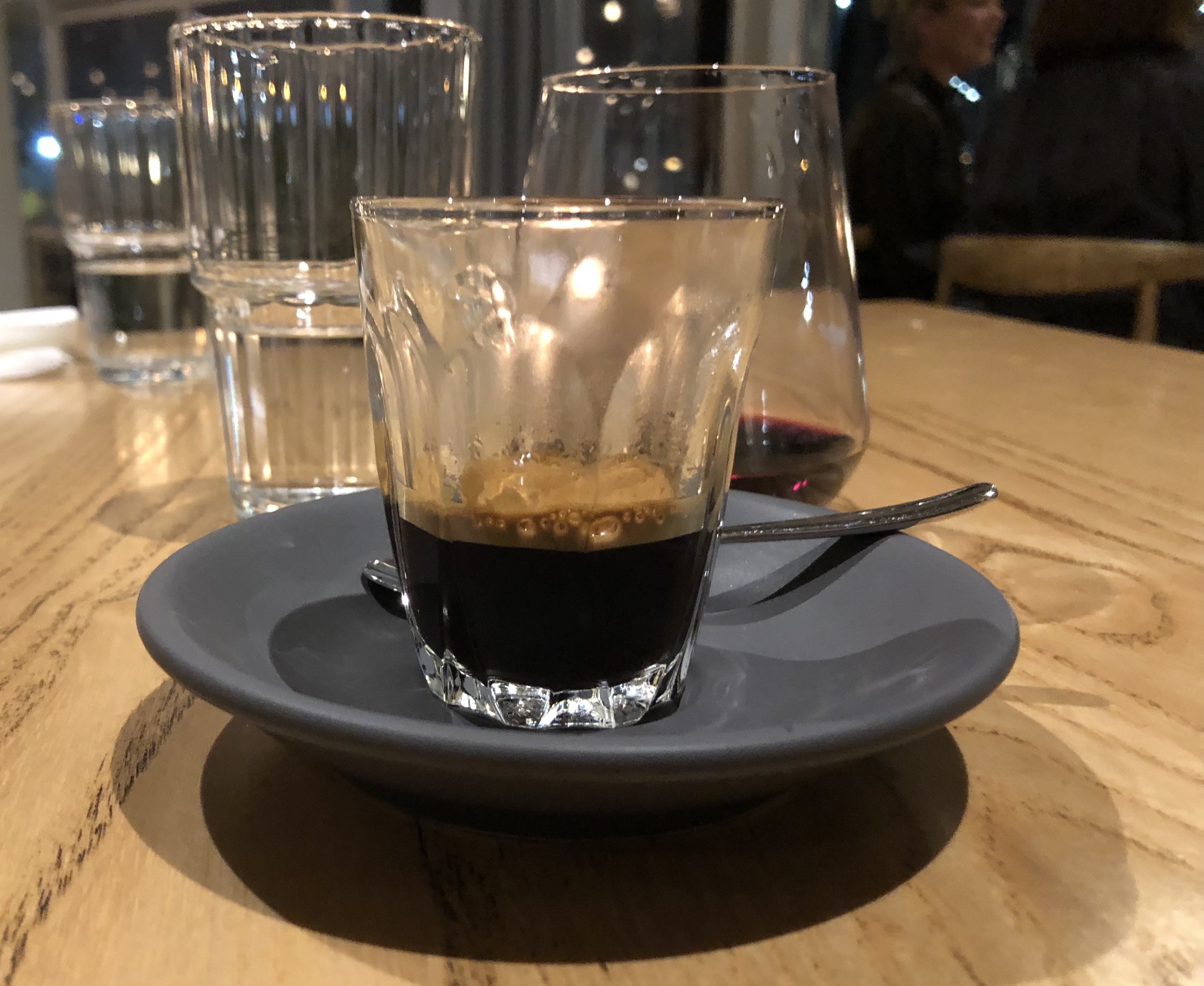 Having had a late lunch, we just had an espresso, each to end the meal. While we were waiting for our taxi to return to the hotel, Peter Gordon himself came over to chat – what a lovely, charming and modest man. A nice end to a good evening.