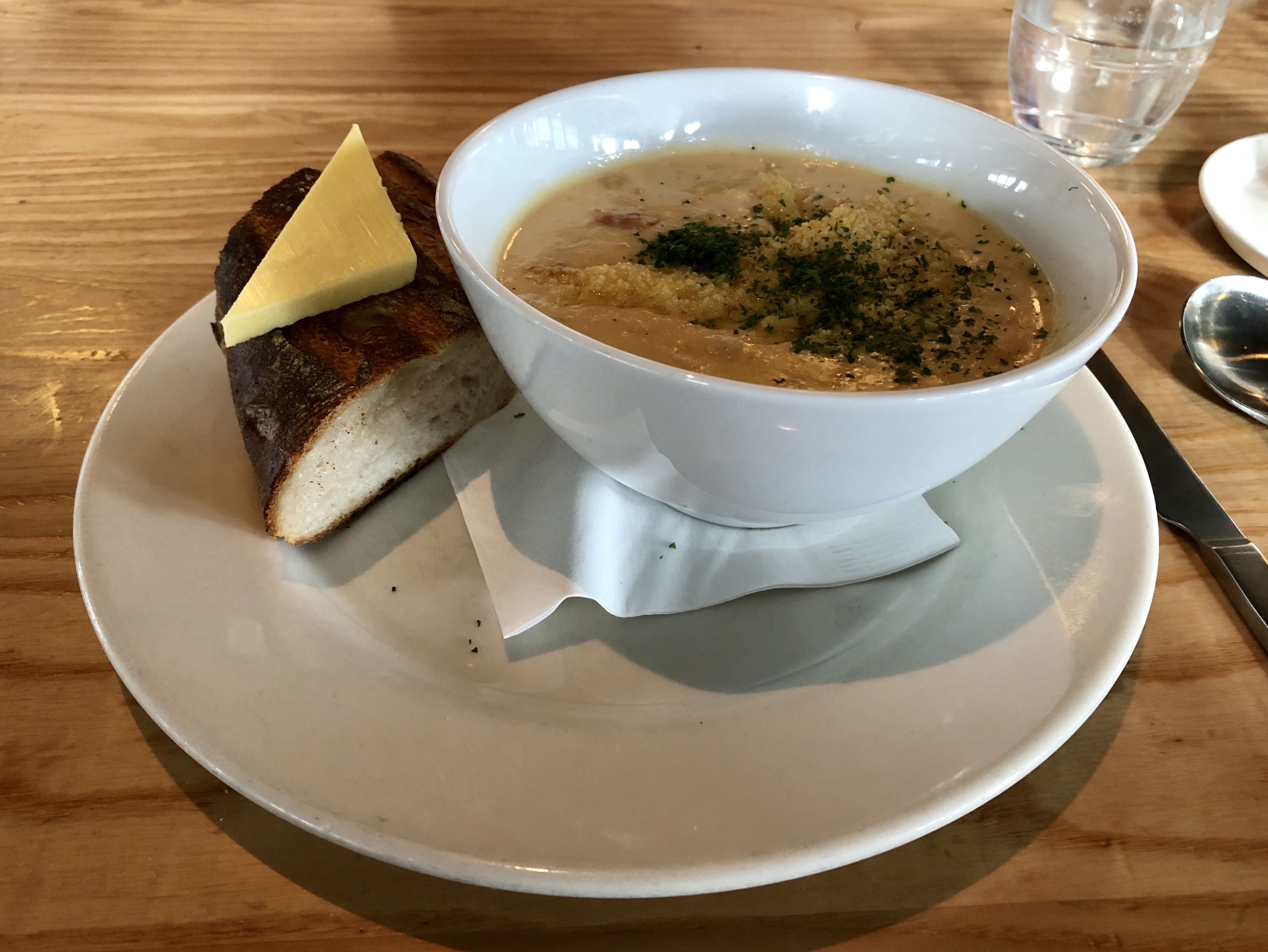 And so to the round up of this week’s good eatings, of which there are quite a few. Starting at the top left, there was a gorgeous rhubarb and custard tart from Arobake for a Saturday afternoon treat with tea, pasta with the mushrooms I grew (see Saturday’s post) during the week and a hot chocolate when working at home on Thursday. In the shopping basket this week there was cabbage, mushrooms (I have to wait a few more weeks for more home grown ones), limes, more yams (oca), passion fruit, tamarillos and kumara to mash with potato for a topping for a cottage pie. I had a really lovely seafood chowder for lunch at Prefab on Wednesday when I met my nephew’s wife and great nephew (he is 9 months old and such a gorgeous wee thing). On Sunday, Karl and I had the most wonderful fish finger sandwiches at Field & Green with some polenta fries on the side for lunch. Now, that was a real small pleasure!