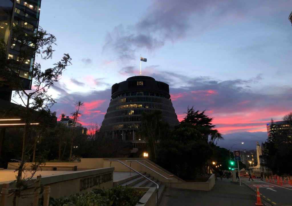There was also this wonderful sky on Friday morning, as seen walking to work. The colours were amazing and just lit up the sky as you can see below, looking particularly stunning behind The Beehive, the New Zealand parliament building.