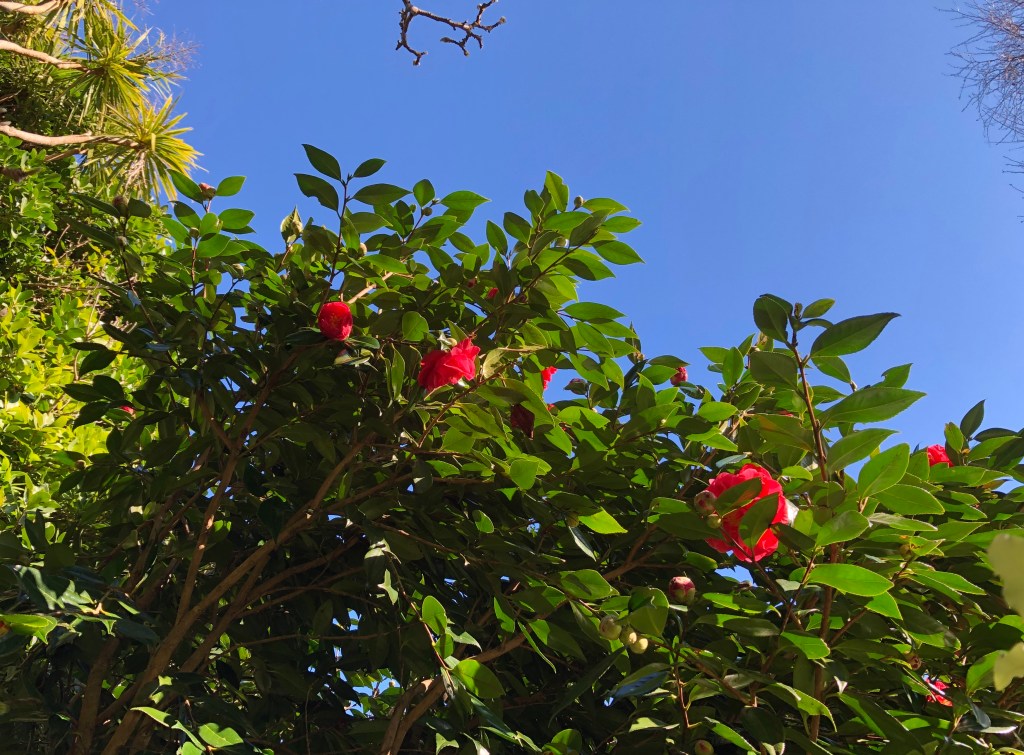 3. I’m now really appreciating, thanks to your post, the nasturtiums. They do make a lovely splash of colour. Meanwhile, your camellias are enhanced by your beautiful, blue sky.
