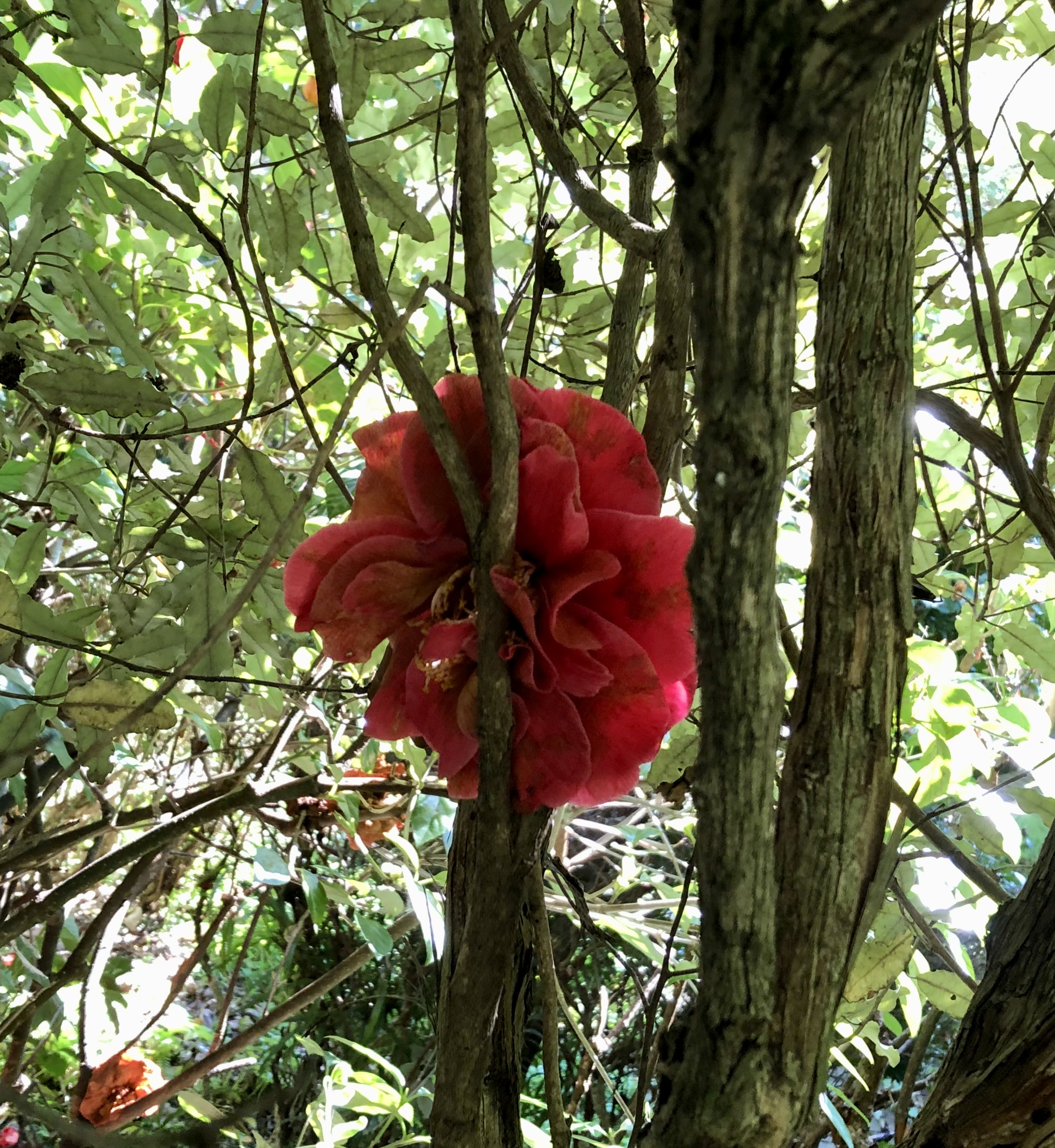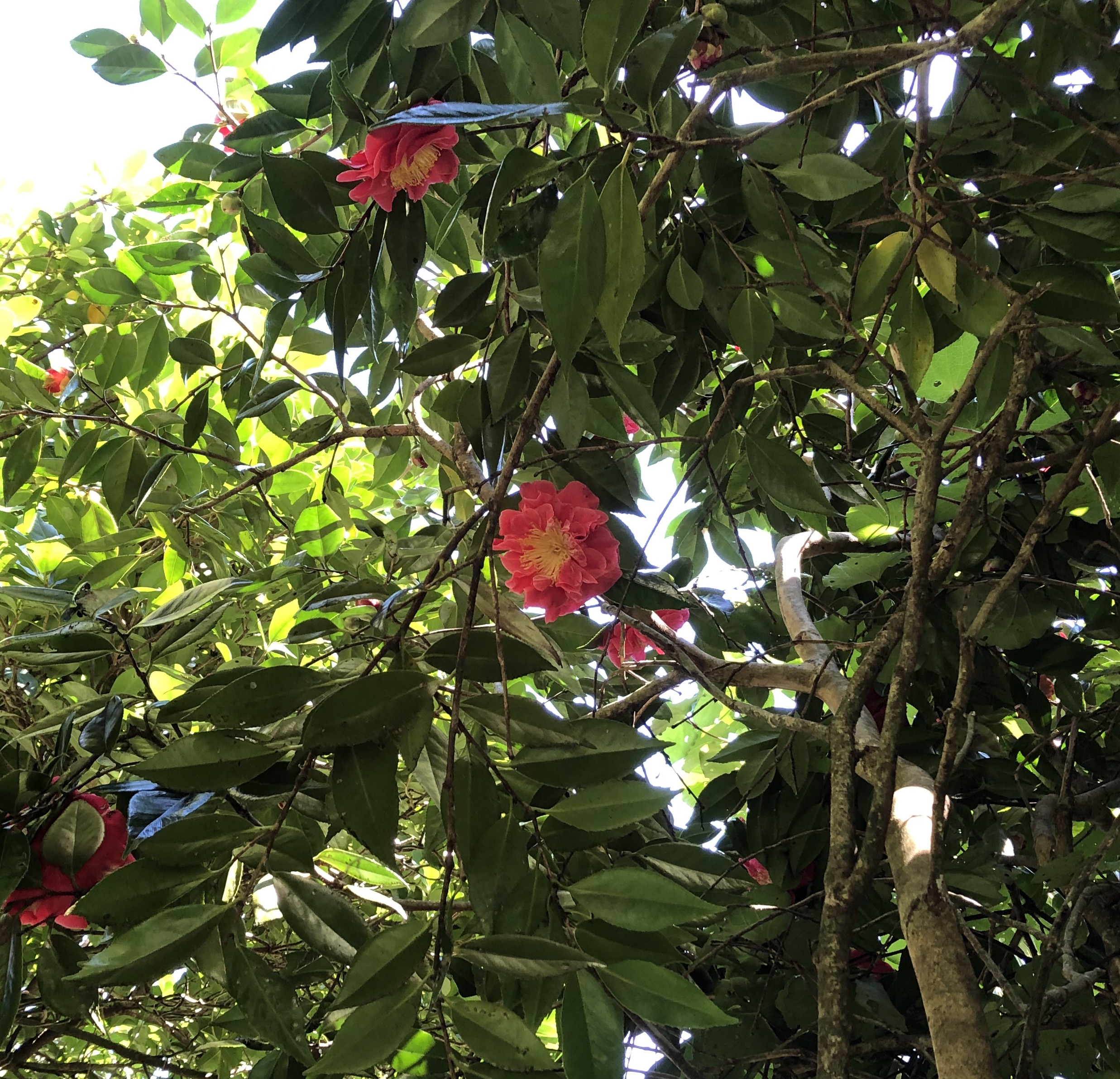 Finally, over to the camellias. The top four pictures are the glorious bush at the back of the house, and you can just see the magnolia buds. On magnolia, there are some magnificent flowers in the Botanic Gardens already. The flower at the bottom is from the front of the house.