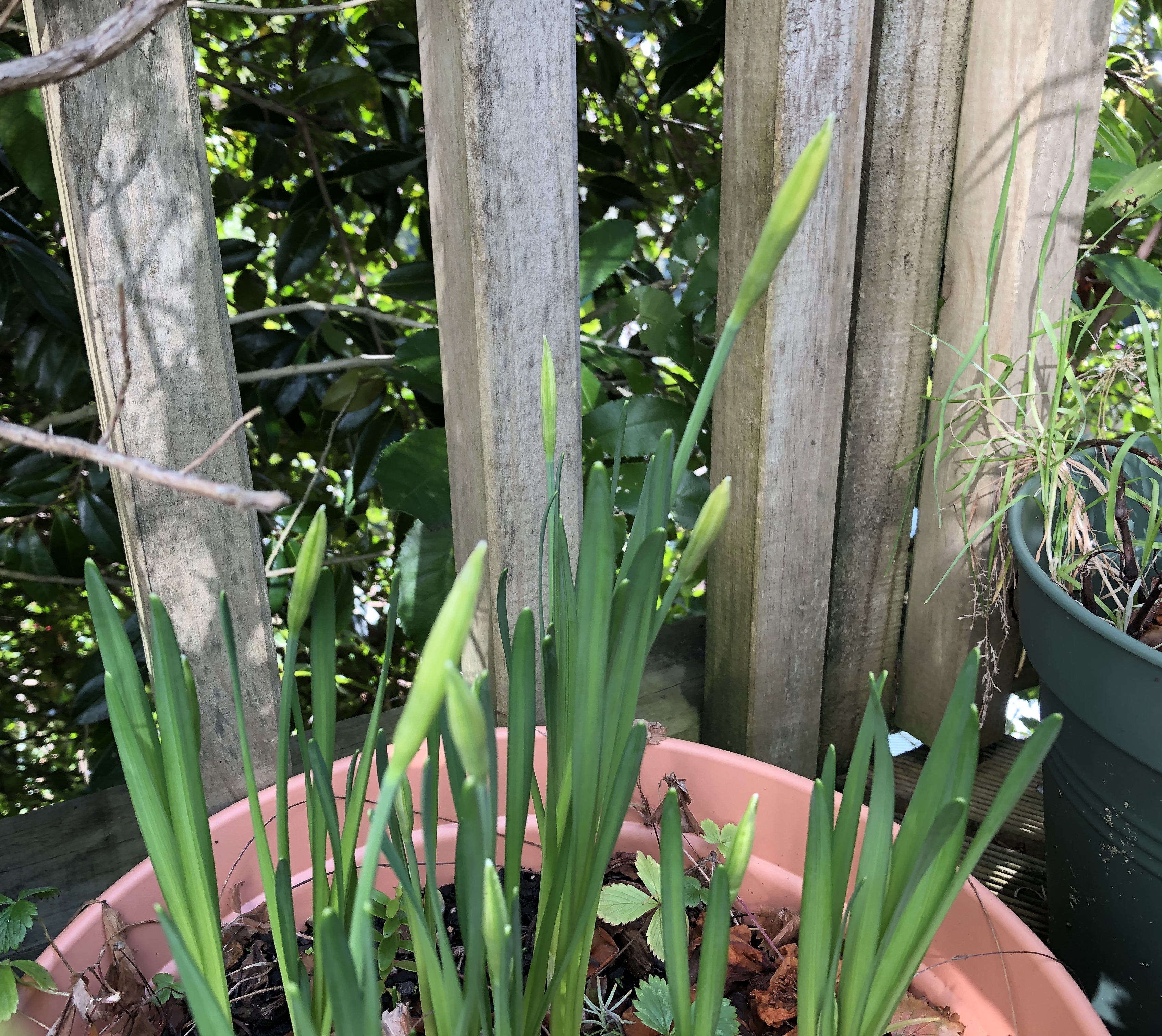 And over to the bulbs, where I hope you can see some progress from last week. I’m looking forward to a decent display soon. There are some daffodils out in the Botanic Gardens already, so it can only be days until I have some flowers.
