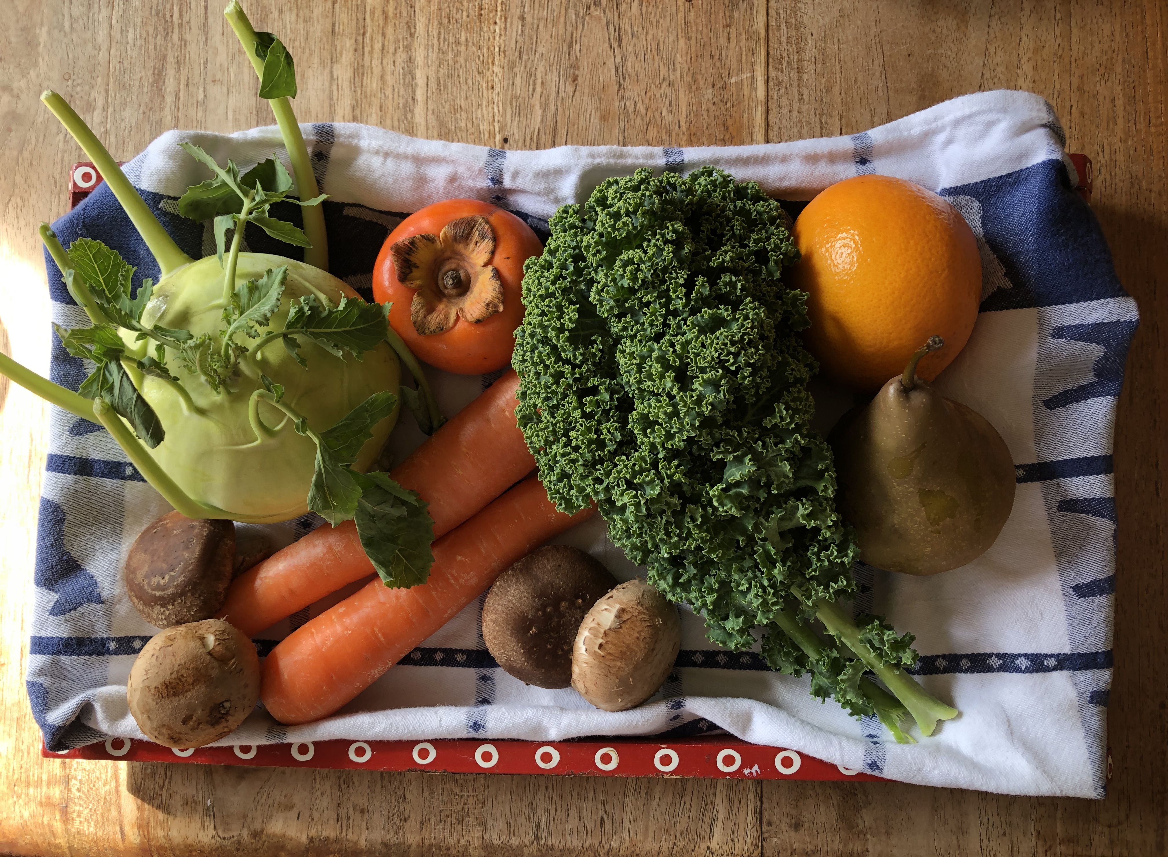 And so to food…and there was lunch at Pickle & Pie on Wednesday and dinner at Field & Green on Thursday as I wrote about in previous posts. In the shopping basket this week there was some lovely looking kale, a kohlrabi (which seems to be everywhere at the moment), carrots, oranges, persimmons, pears and two sorts of mushrooms.