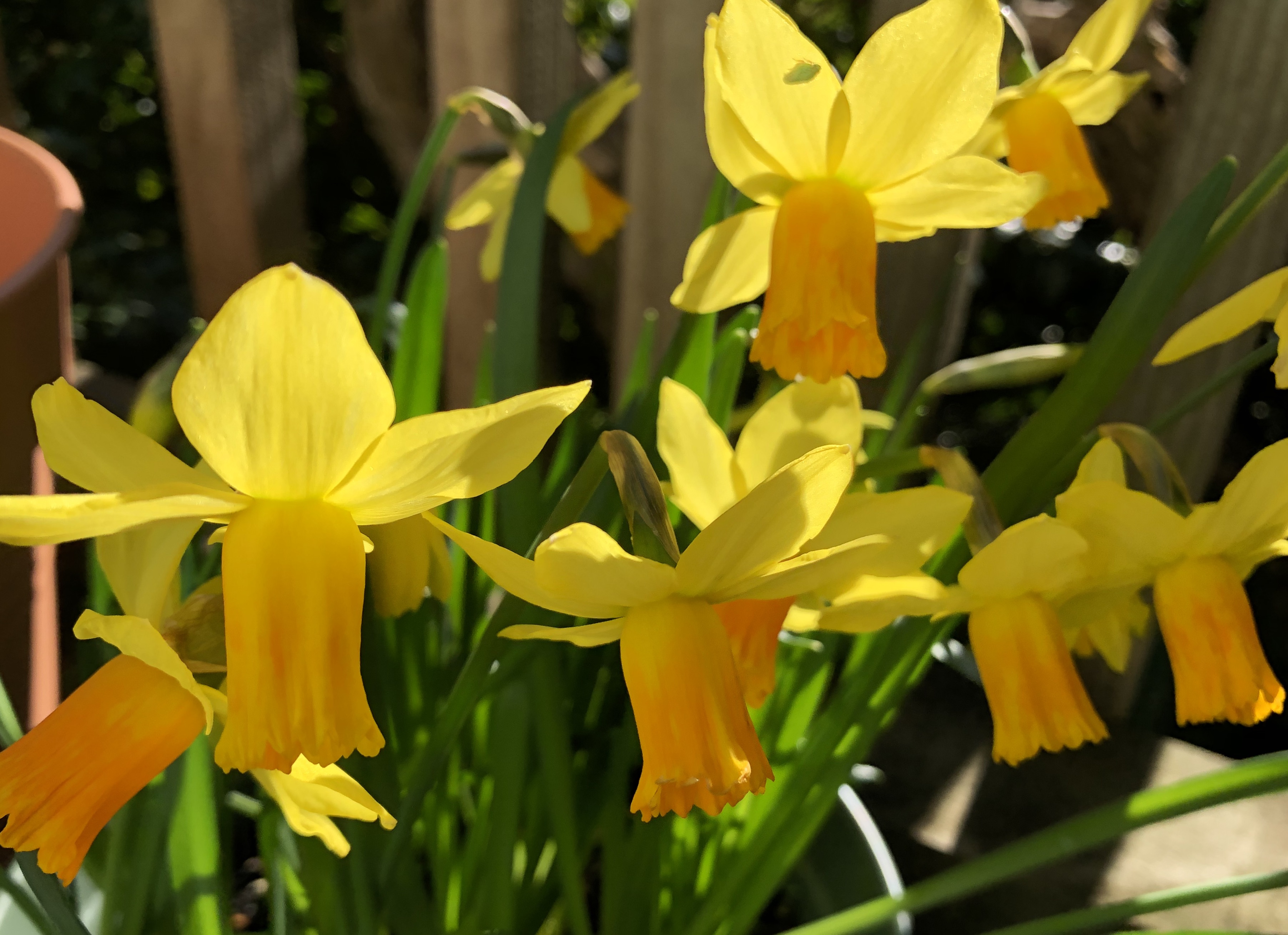 Finally, daffodils. Every day I am seeing more golden blooms when I look out of the window. I particularly like the double headed one, and of course the joy of Jetfire. I brought one pot of miniature ones indoors when the weather was particularly bad, and they seem to be doing fine as well. Expect more next week!