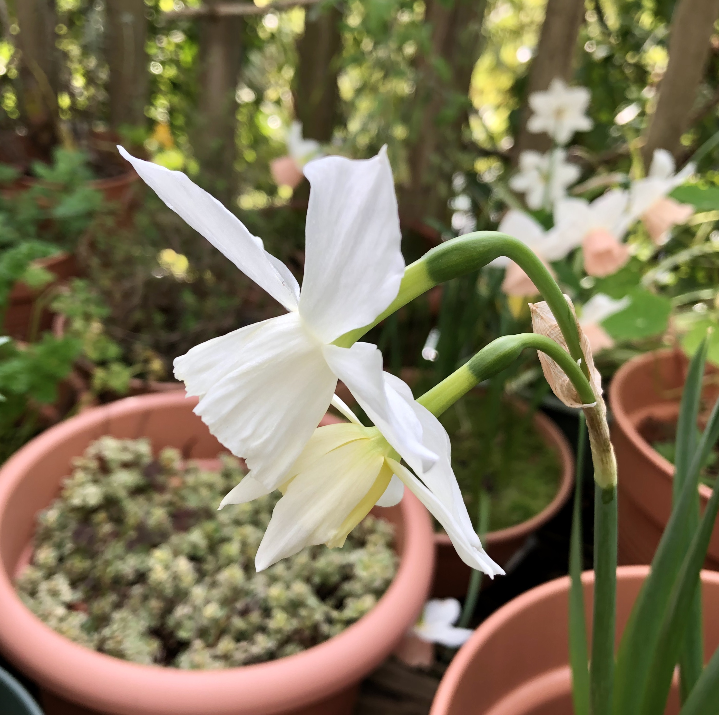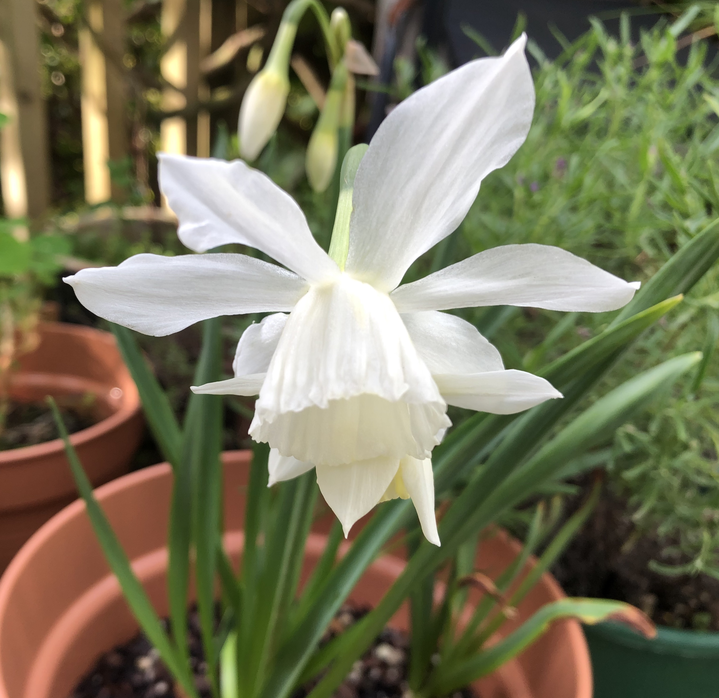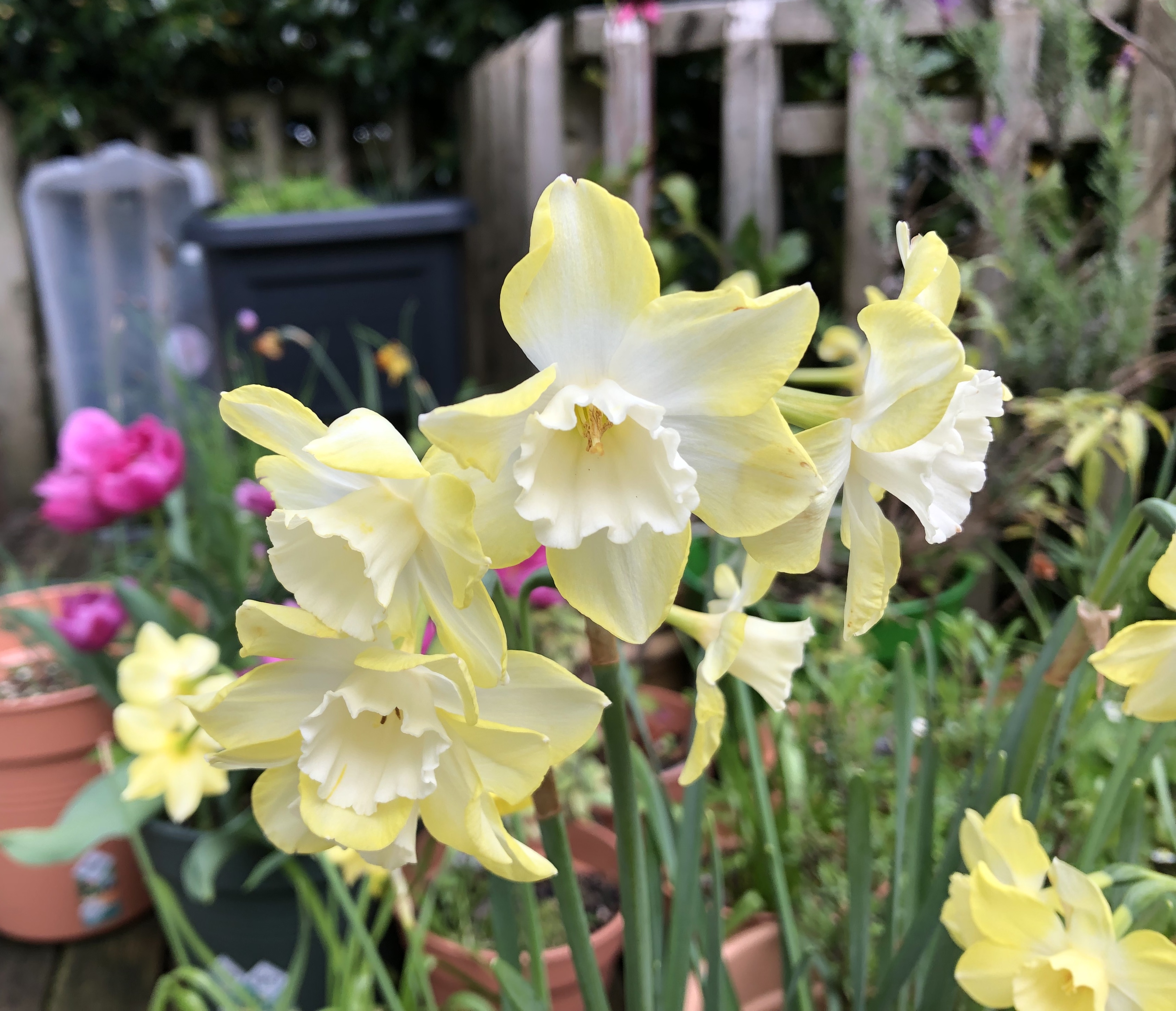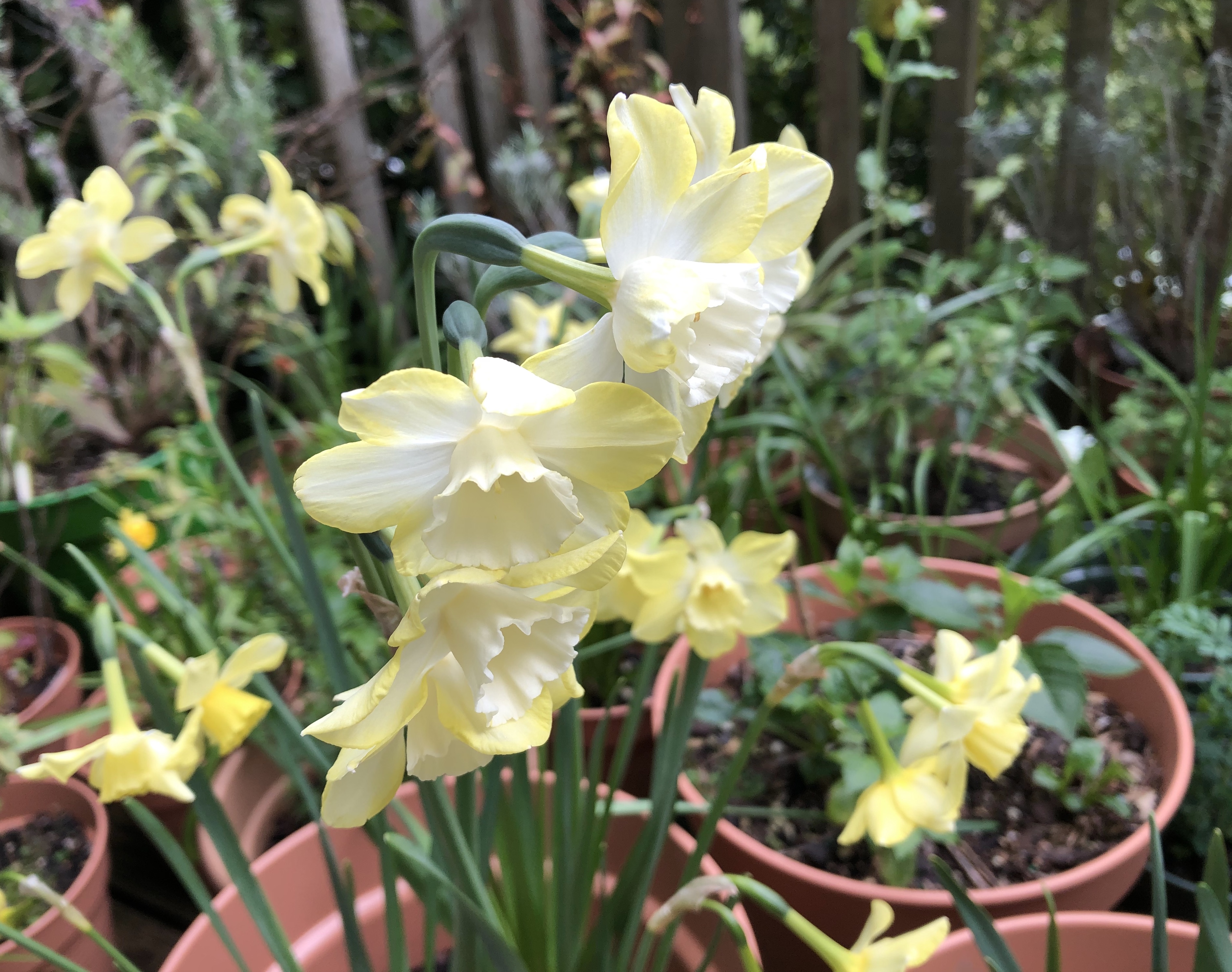 And so to the daffodils, With the first blooms now fading, the second set are coming up nicely. The new this year Pipit, are a pale yellow with lots of clusters of flowers and look so pretty – the pictures don’t really do them justice. My old ‘peach and cream’ are doing well again, and the also new Thalia has produced some very attractive white flowers. I am so pleased with my daffs this year – we have had and are still having a wonderful display.