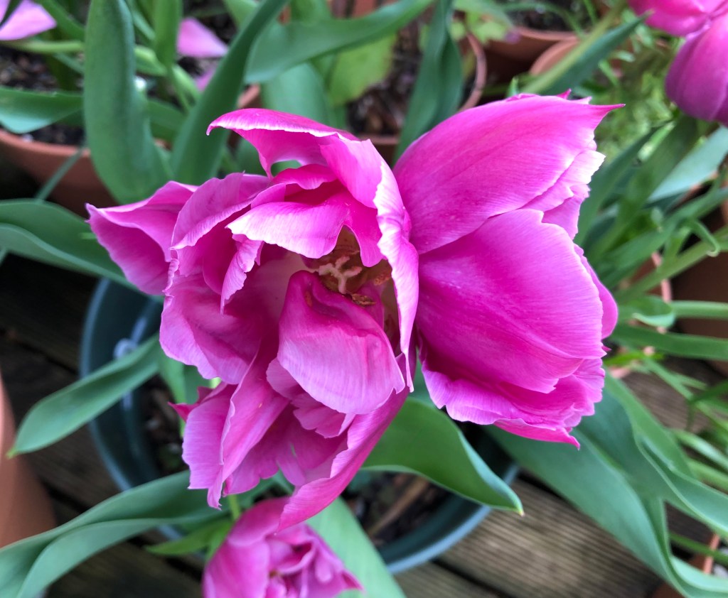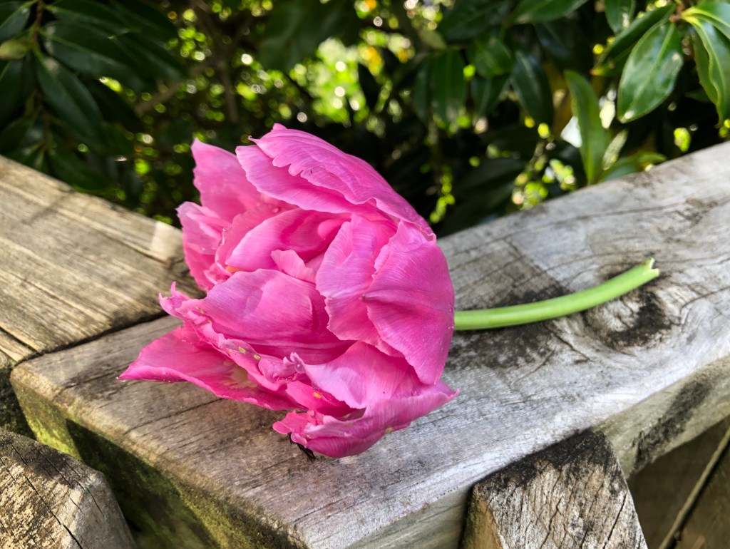 First up…tulips. One flower head was the victim of the stormy weather unfortunately, but the others are still looking blousy and billowy. There is a wonderful display of tulips in the Botanic Gardens at the moment, so I’ll do a post with pictures either tomorrow or midweek.