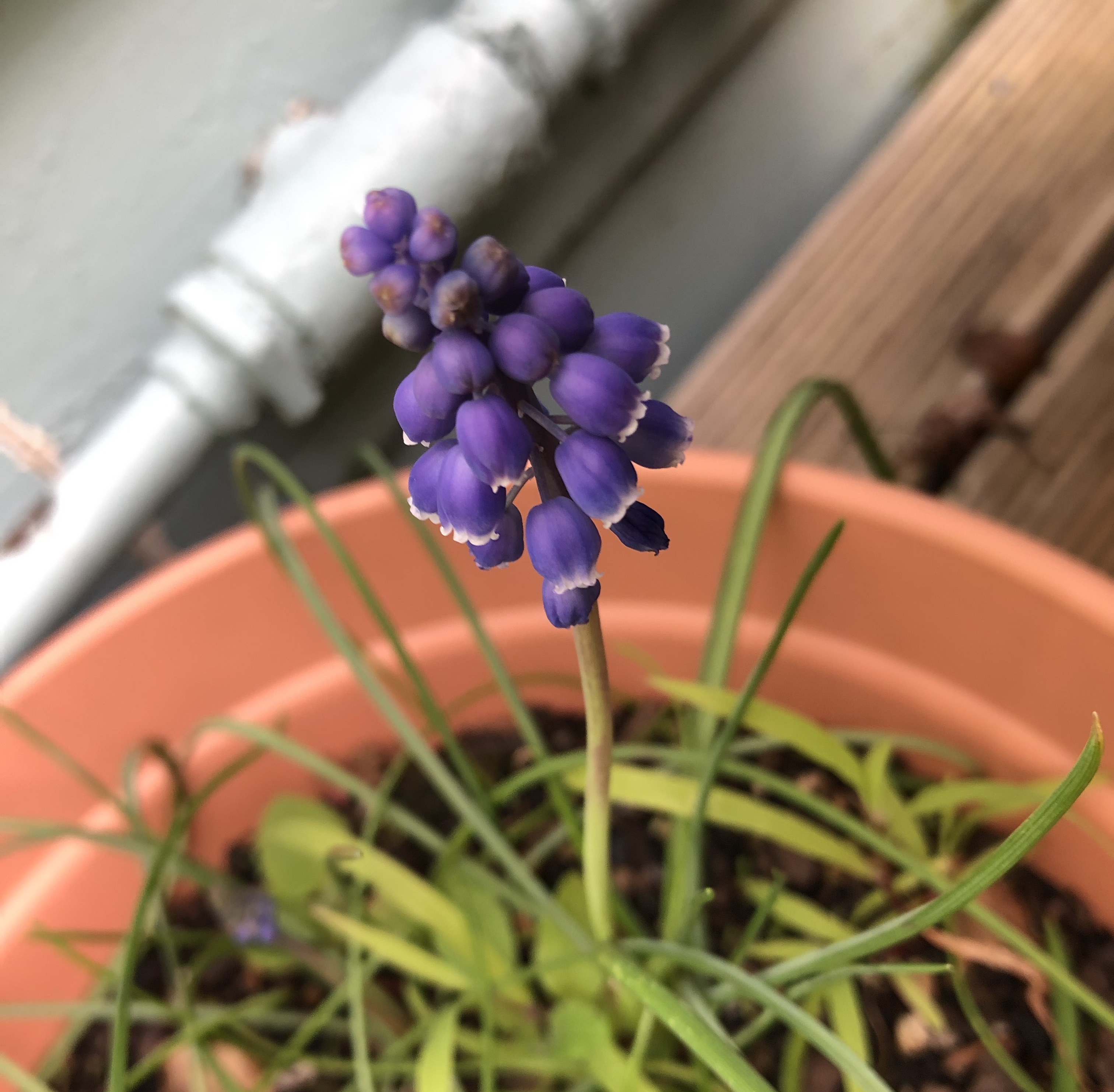 Next to the miscellaneous corner, this week featuring a hellebore bud, one of those pretty but can be invasive little lilac viola shaped flowers and straggly muscari. My chive plant is sprouting flowers all over the place, so once I can get a decent picture, I’ll pop it on here. They will make a nice addition to a salad too I guess!