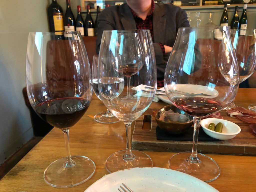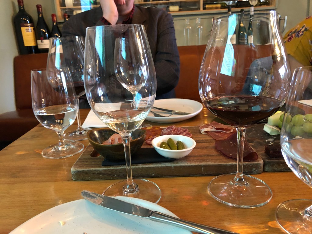 Josh and Jessica, two of the wine bar’s sommeliers, took us through the wines and explained the importance of place as much as the grapes used in the wines. If you take a wine like the Riesling we tasted (which I really liked), the resulting product depends on which side of the Rhine the vines are grown, if they are in shade or sun, the direction of the wind and so on. We also learned how in Italy the grapes are names after the region – the one we tasted came from the Campania region where ancient, native varietals, Fiano, Greco, and Aglianico can be found.