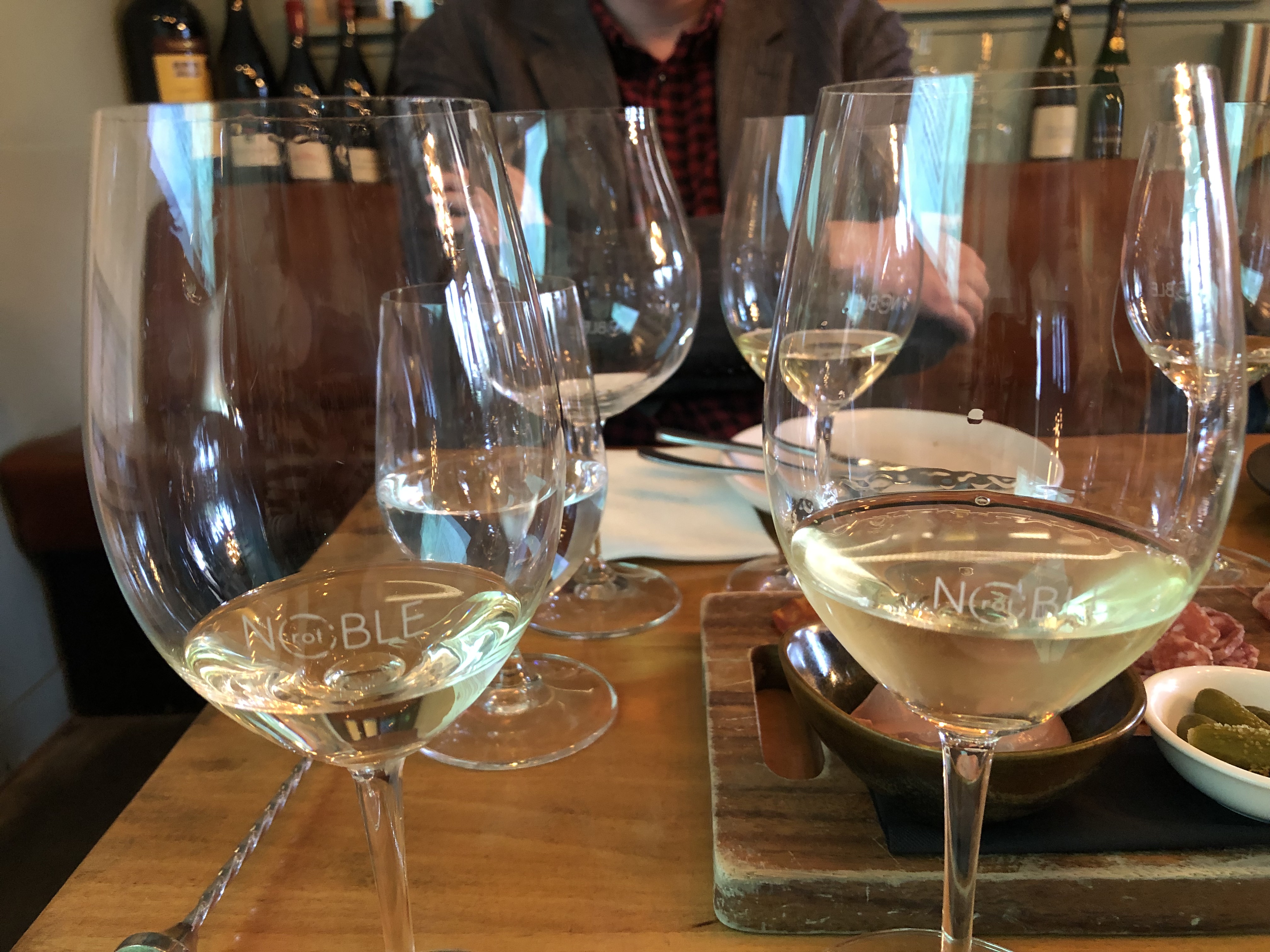 As lunch time approached on Saturday, we headed over to Noble Rot Wine Bar for a wine tasting which had been postponed due to the August lockdown. Entitled Voyage Through Wine, the event gave us the opportunity to taste six wines from around the world, while enjoying some charcuterie and cheese, and hearing about each of the wines and their backgrounds. As Josh who was one of our guides of the day said, we can’t travel just now so let’s tour the world with wine.