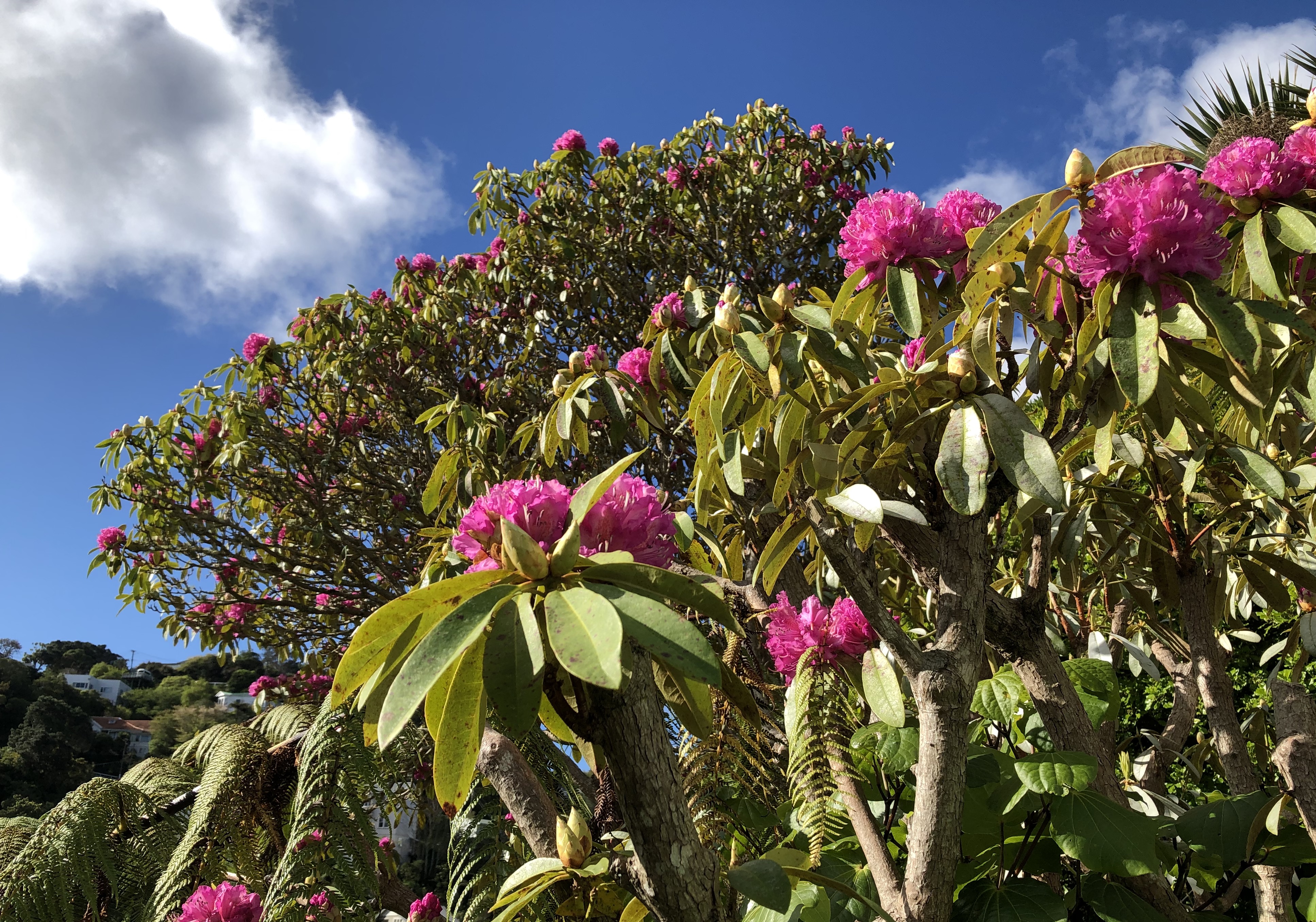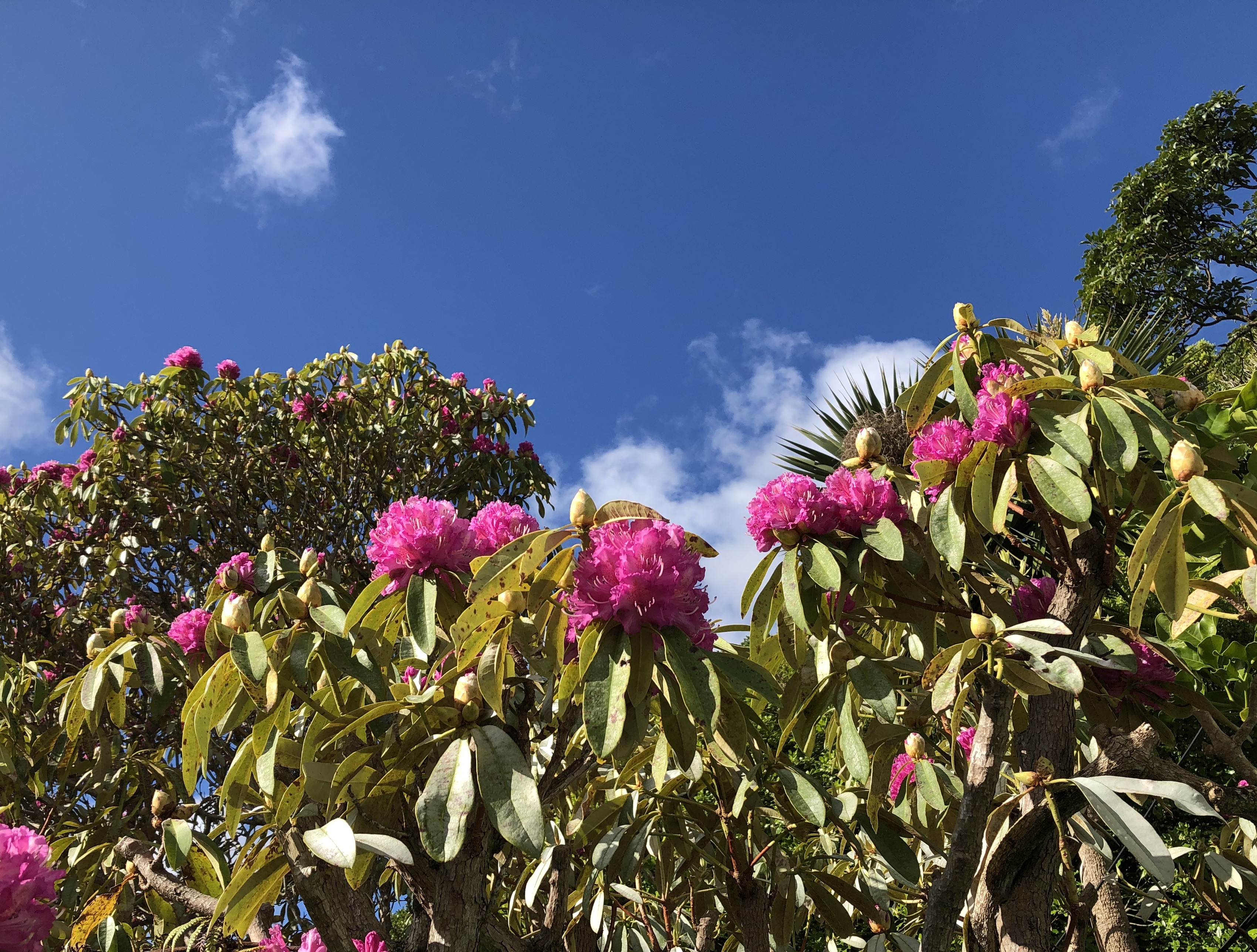 And finally, the rhododendron, which is full of flowers. I just love the contrast of the bright pink with the blue skies, which you can see clearly in the featured image at the top of the post.