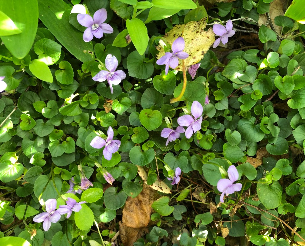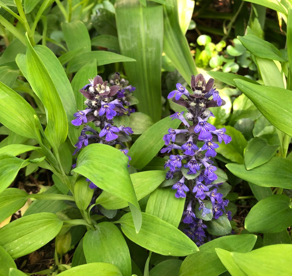 There has been a huge amount of sudden growth all over the place this week. While some of this is obviously welcome, it also means a lot more weeds, The shady side of our house though is looking so lush and verdant, with a few hellebores still to be seen, lots of bright blue ajuga and strong signs of a good future display of alstroemeria. Those little violet weeds are also spreading…but honestly the place they are in is pretty inaccessible, so they will just have to stay. At least they look pretty.