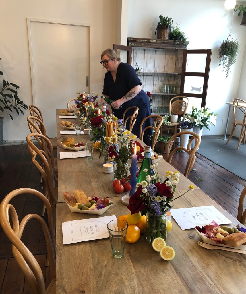 Below you can see Mindy putting the finishing touches to the table, the end product and the photographer in action. Not only did we get to take our flowers home, but local producer Bongusto who provided the snacks, also provided a takeaway of some fresh pasta and sauces.
