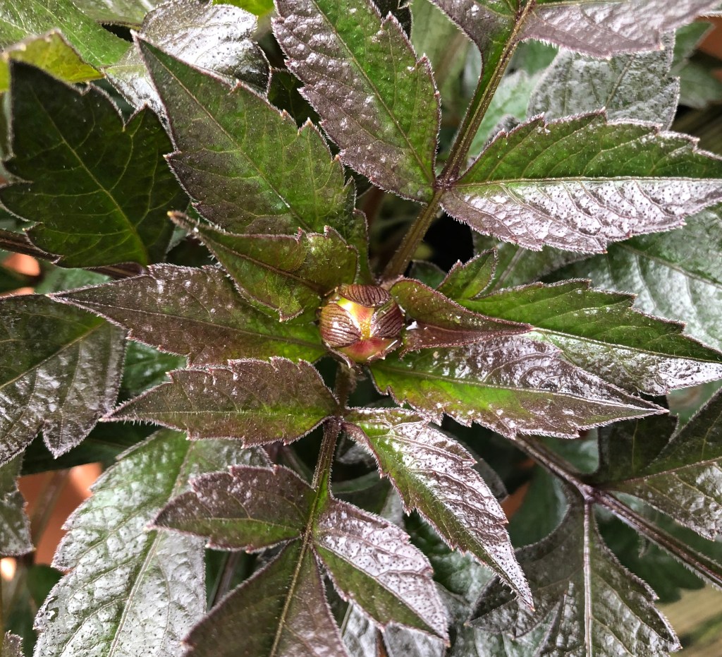 1. It has been raining here all day until about an hour ago, but I have just been out to check and pick some herbs for dinner. There is a bud on one of my other new dahlias too….
