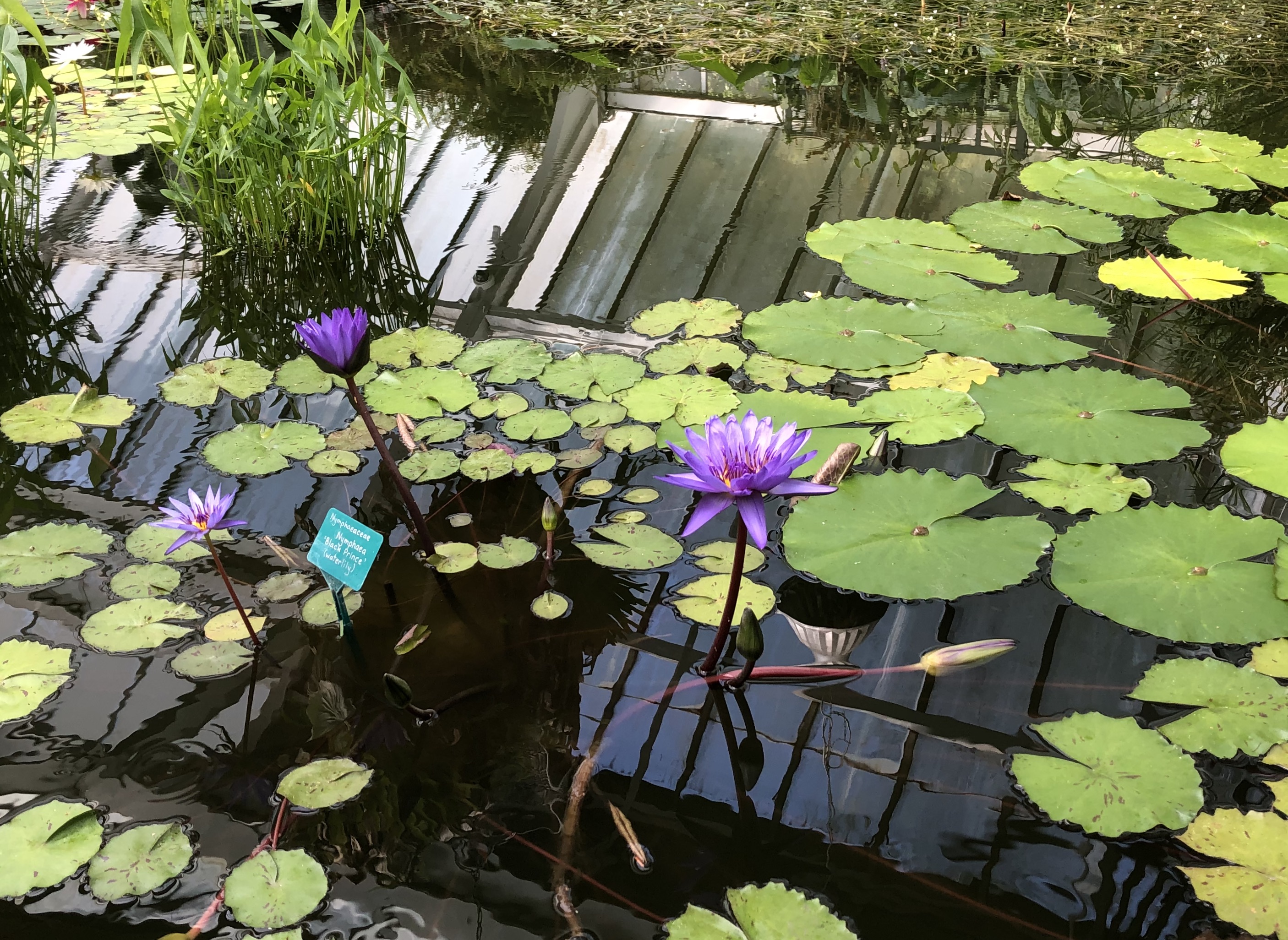 I wandered into the Begonia House to look at the lily pond, which is always such a peaceful place to walk or sit. There were some gorgeous waterlilies today – white, purple, yellow and pink.