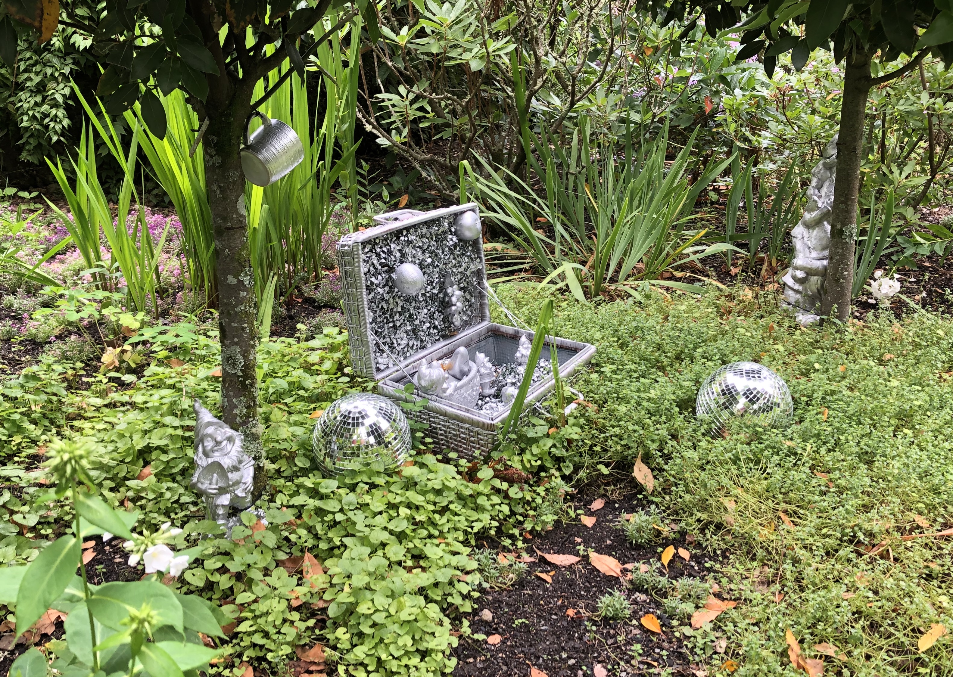 Thanks to Covid restrictions, the usual series of summer concerts in the gardens has been cancelled this year, but there are decorations all over parts of the gardens, with lights, sound installations and little surprises like these partying garden gnomes, complete with disco balls. There was also a teddy bear’s picnic going on, with a maypole, barbecue and even a swimming pool in a suitcase. What fun!